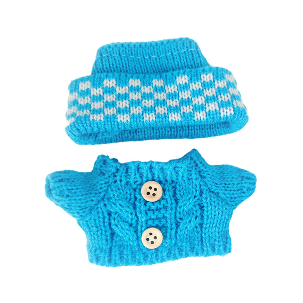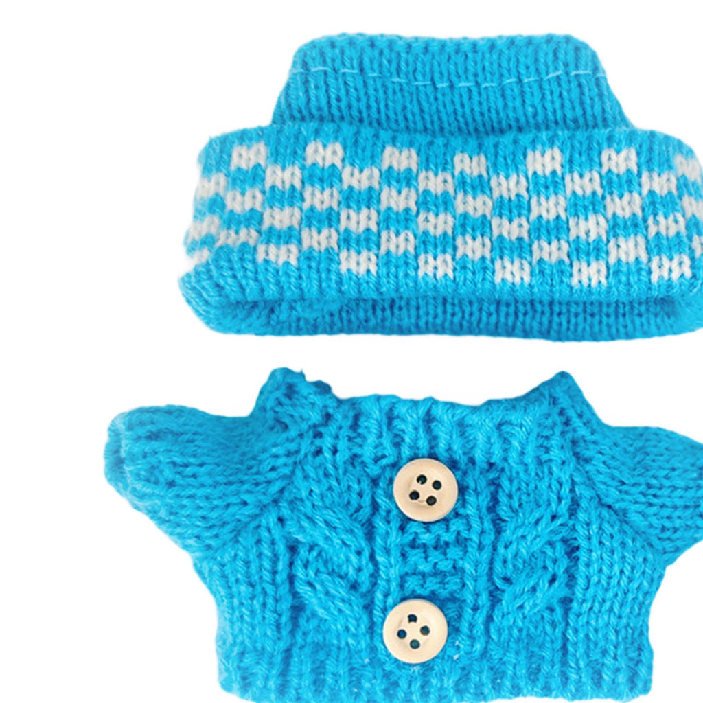 Maxbell 2 Pieces Plush Doll Sweater and Hat Doll Clothes for 5.91inch 6.69inch Dolls blue