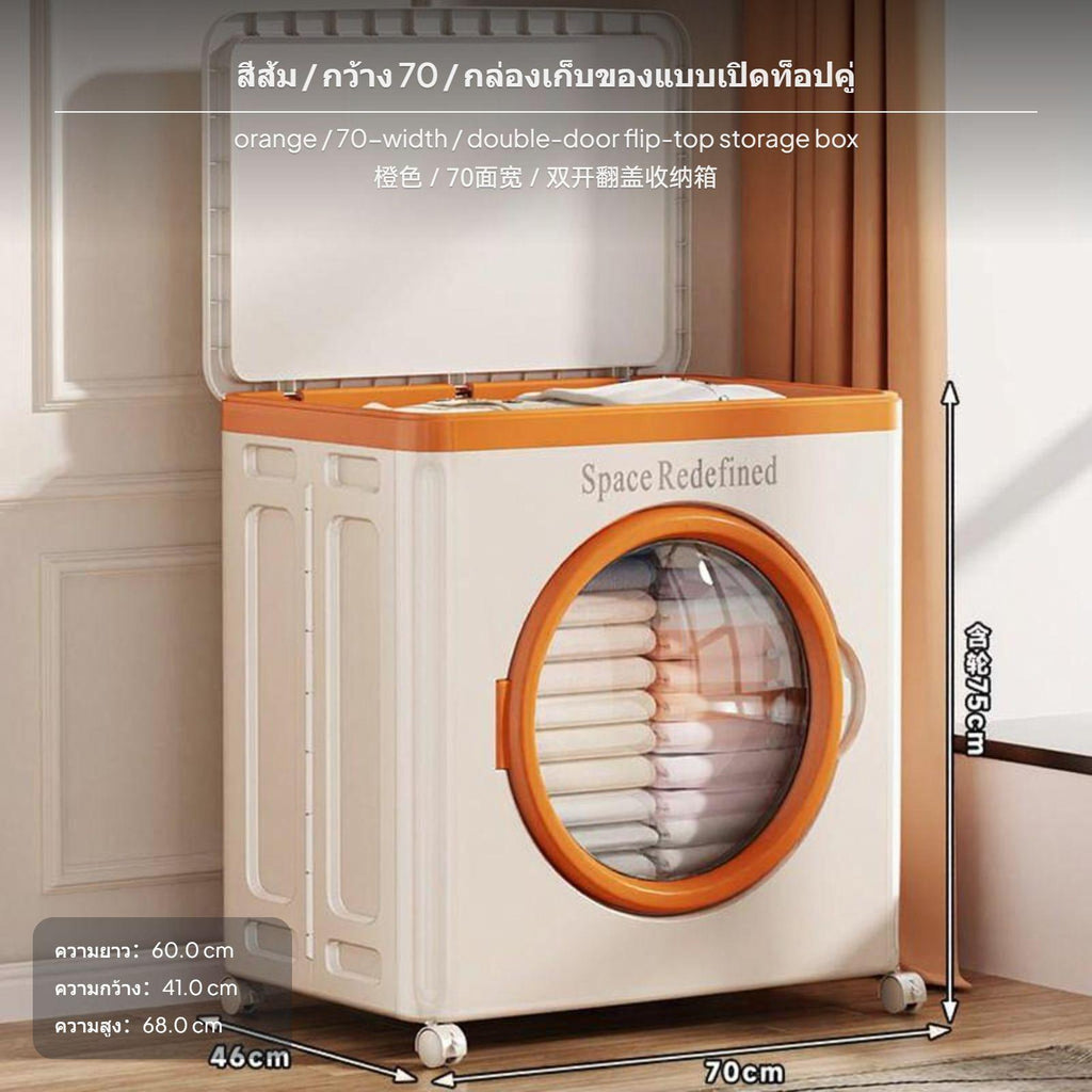 [Spacious Storage Solution] The additional large storage box meets various home needs, perfect for organizing clothes and toys with a foldable design for adaptable use.[Convenient Double Door & Flip Lid Design] Features both a top flip lid and front double doors, allowing quick and easy entry from multiple sides.[Premium Thickened PP Material] Crafted with high-quality PP, this organizer resists deformation and supports substantial loads, ensuring enduring usage.[Transparent panel Easy Mobility] The clear panel lets you identify contents at a glance, while 360-degree caster casters provide easy movement and cleaning.[Multi-Scene Versatility & Stylish hues] Available in several sizes and contemporary hues, perfect for bedroom, living room, kids' room, or storage space to keep your home organized.Specification: