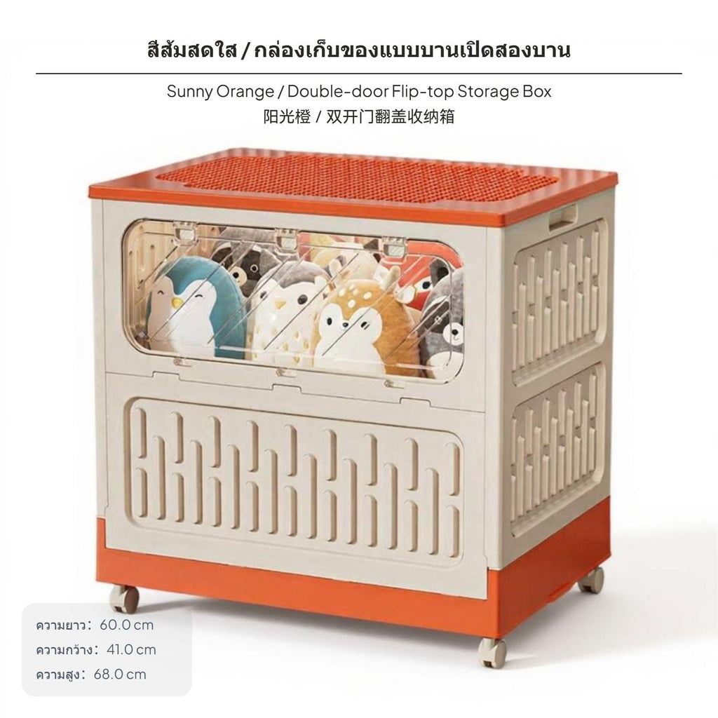 225L additional Large Storage Box, Foldable Double Door Organizer with casters, Clothes & Toys Bin Sunny Orange 66