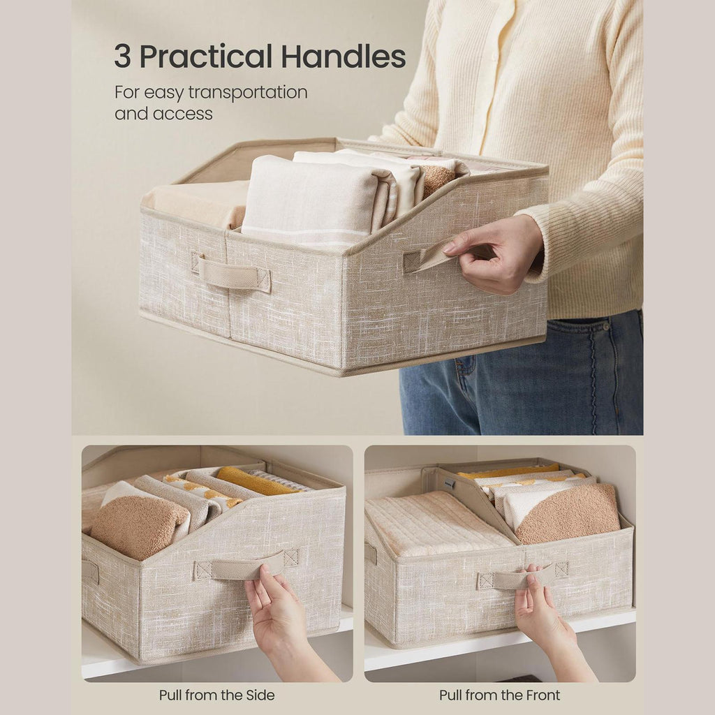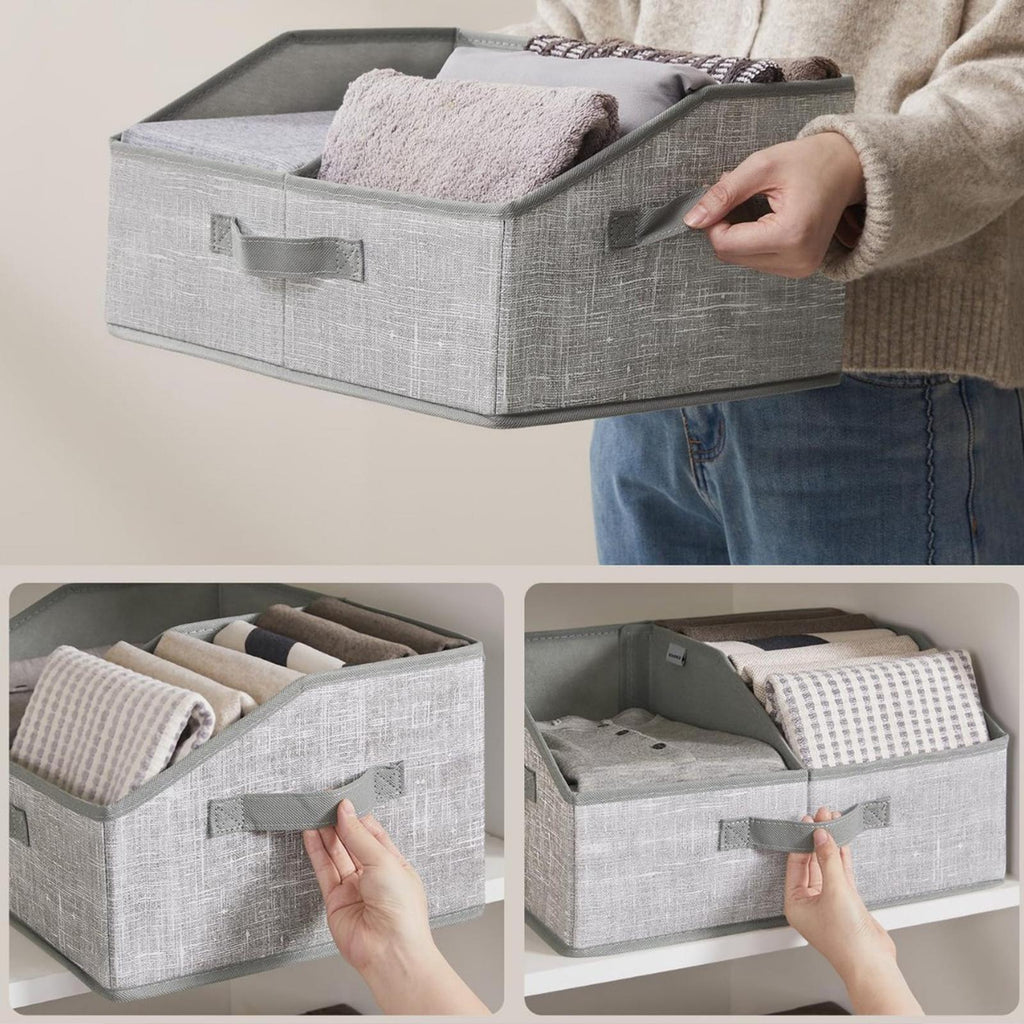 【Large Capacity】: Divided Storage Baskets have large capacity, 2 compartments and can be used to store books, toys, clothes, sheets, blankets, etc