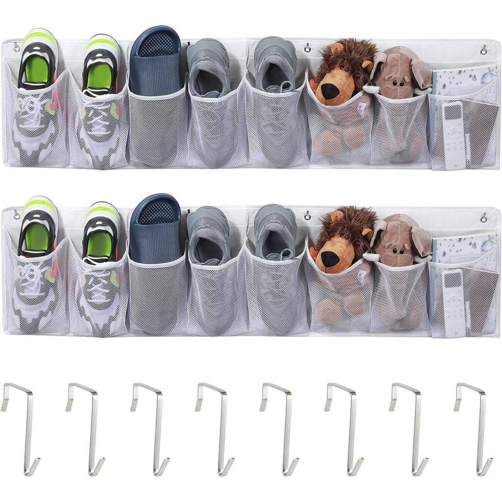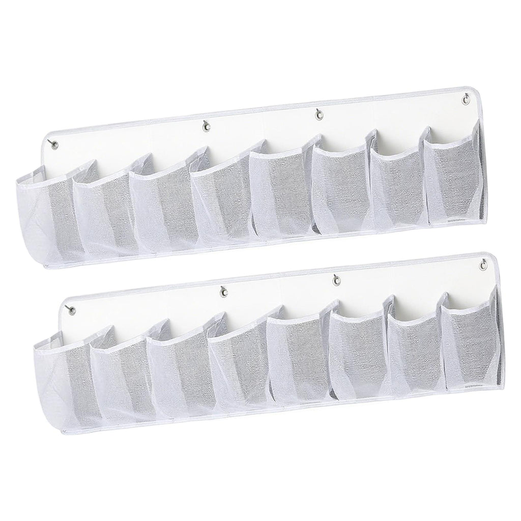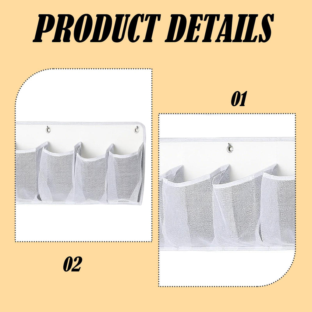 - 【Product List】: 2 Storage Net Bags, 8 Hooks, the size after unfolding is about 115 cm x 30 cm / 45.28 inch x 11.81 inch; each net pocket is about 14 cm x 20 cm / 5.51 inch x 7.87 inch