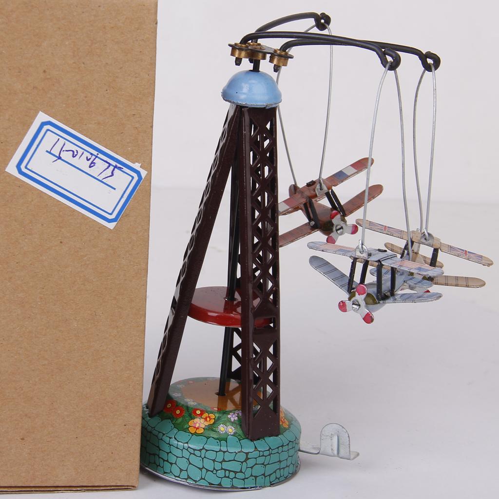 Maxbell 2x Vintage Wind Up Flying Airplane & Spacecraft Space Ship Carousel Tin Toys