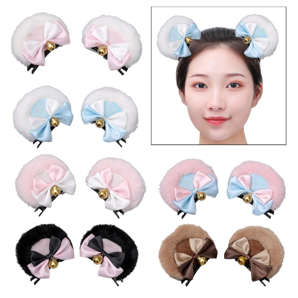Maxbell 2x2Pcs Bear Ear Hair Clip Plush Animal Hairpins for Birthday Party Anime Theme White Pink