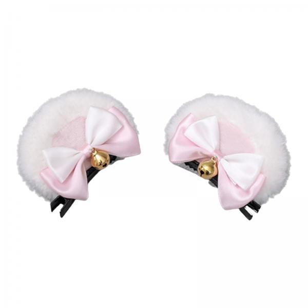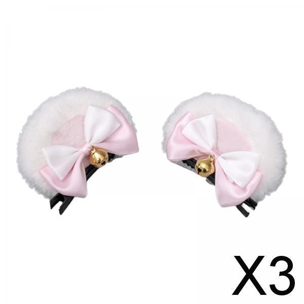 Maxbell 3x2Pcs Bear Ear Hair Clip Plush Animal Hairpins for Birthday Party Anime Theme White Pink
