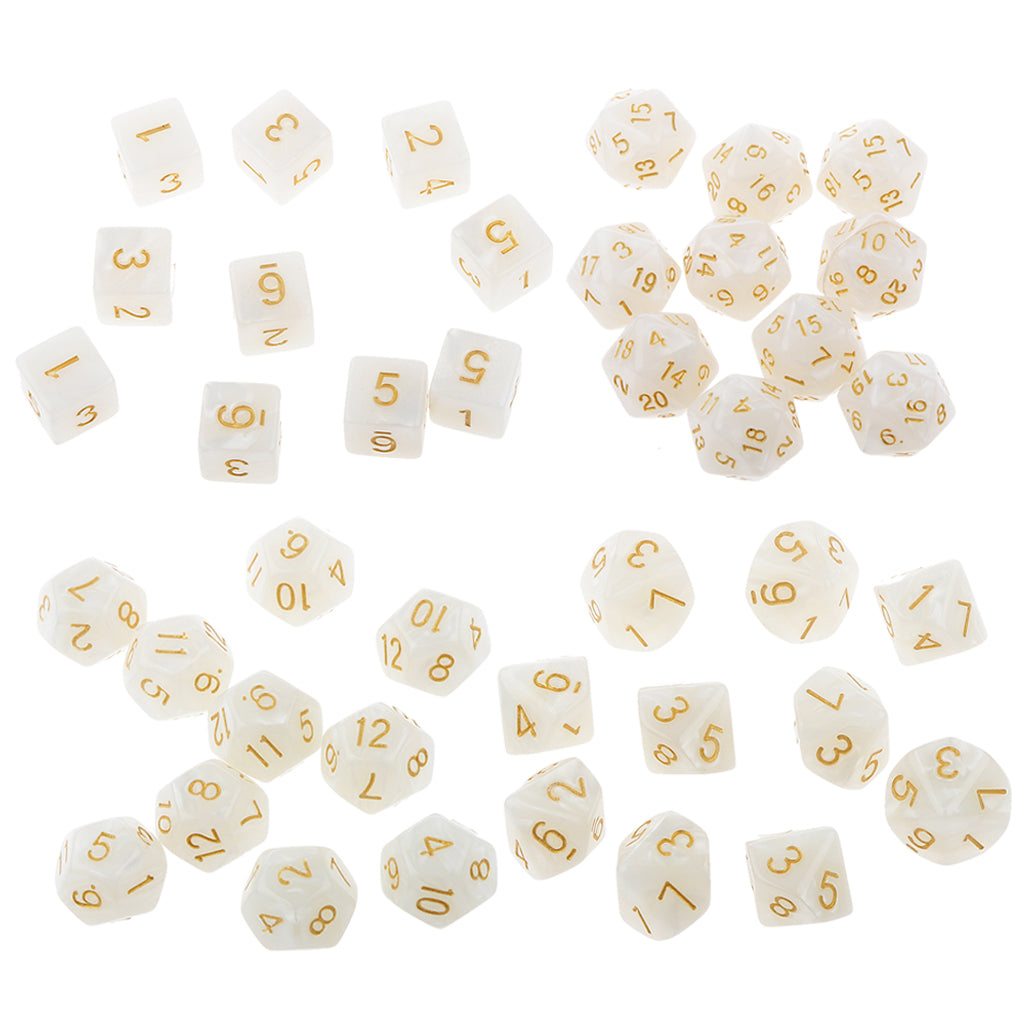 Quantity: 40 Pieces( 10 Pieces D6 Dice, 10 Pieces D10 Dice, 10 Pieces D12 Dice, 10 Pieces D20 Dice)