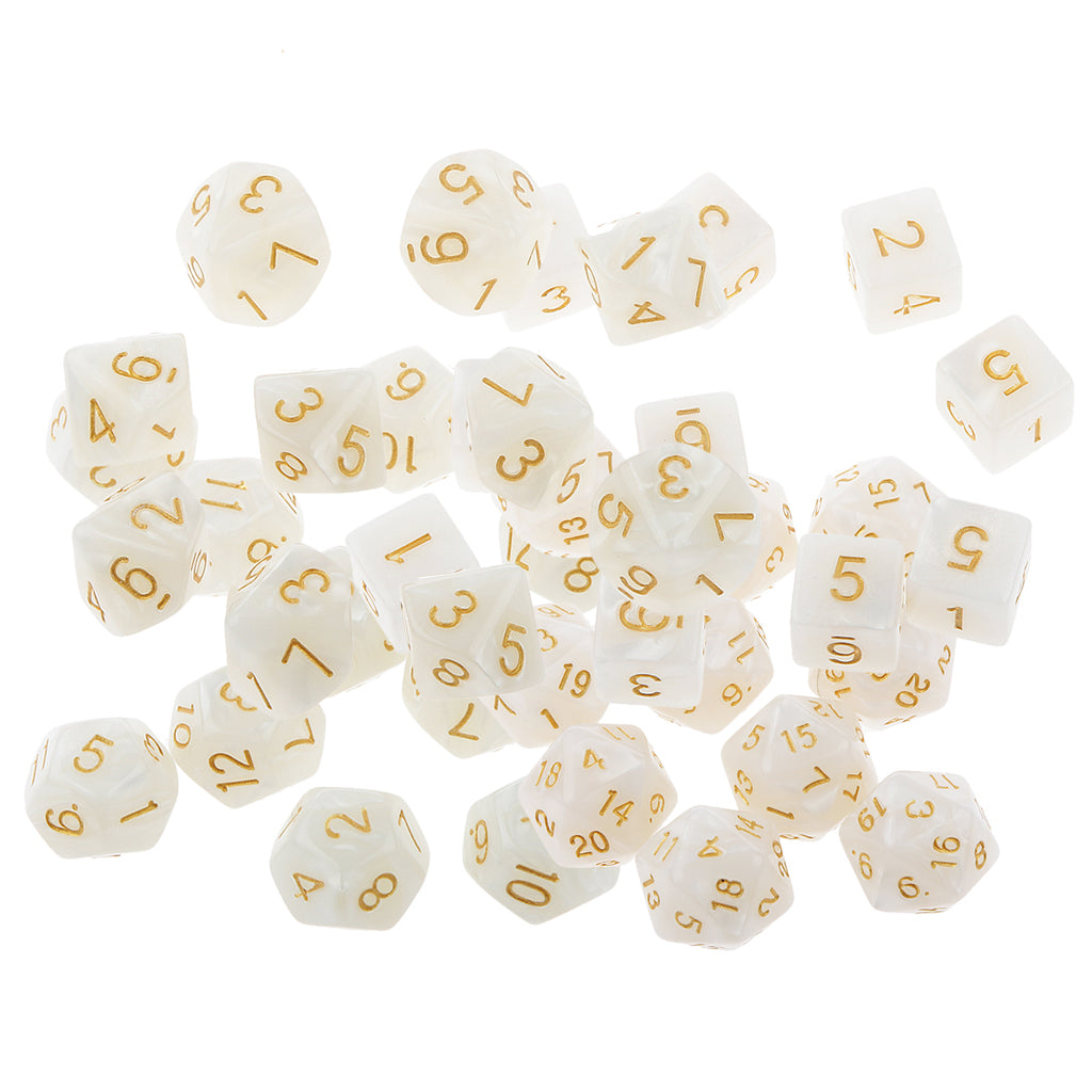 Maxbell 40 Pieces Multi Sided D6-D20 Dice for D&D TRPG Party Board Game Toys White