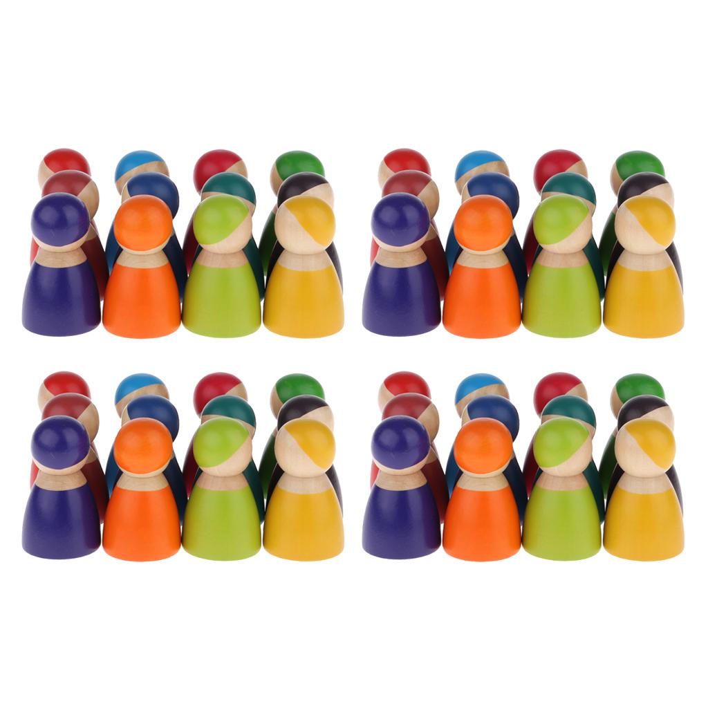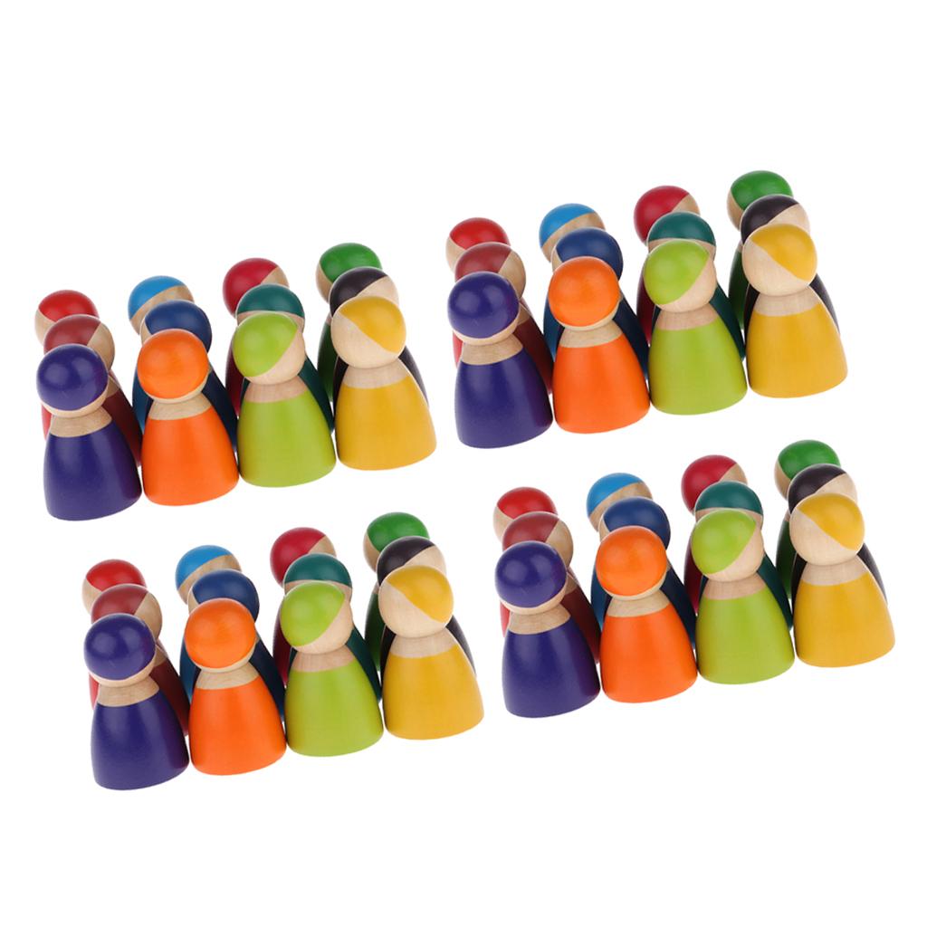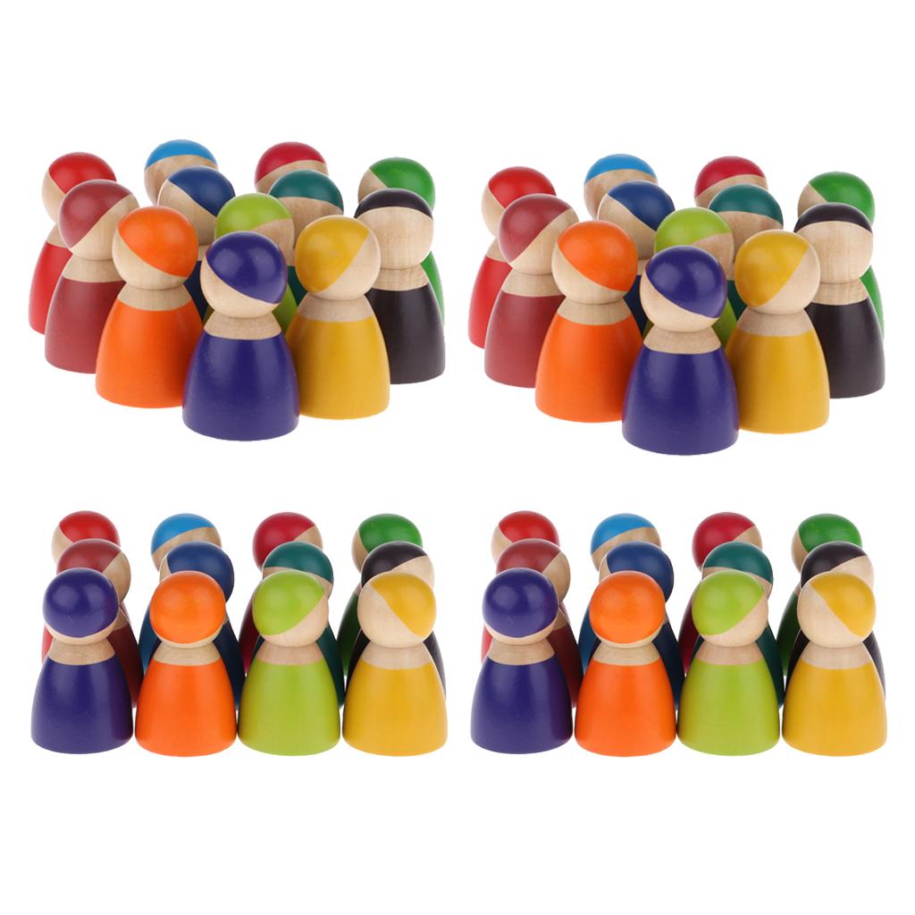 Maxbell 48 Pieces Rainbow Wooden Peg Dolls People Dolls Decorative Craft Kids Toys