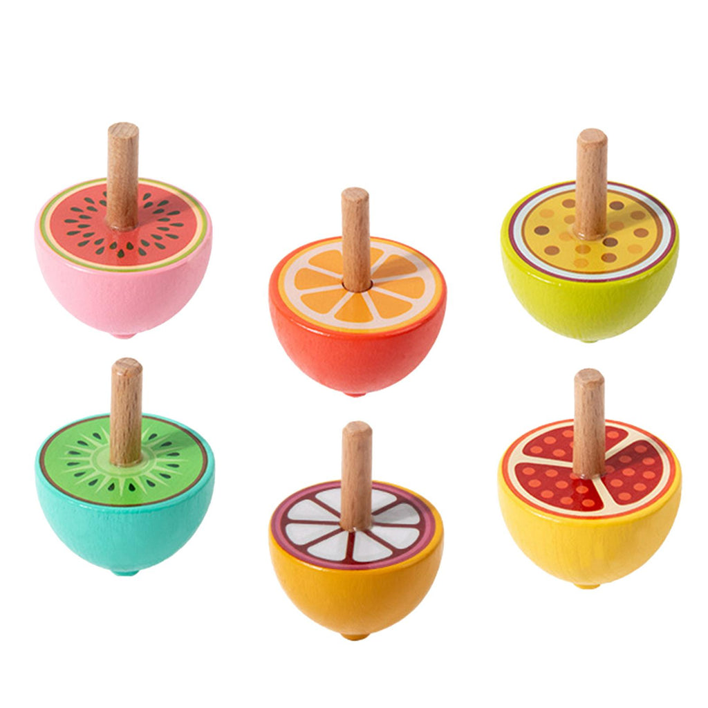 Maxbell 6x Wood Gyroscope Toys Classroom Prizes Educational Toys for Girls Boys Kids Fruit