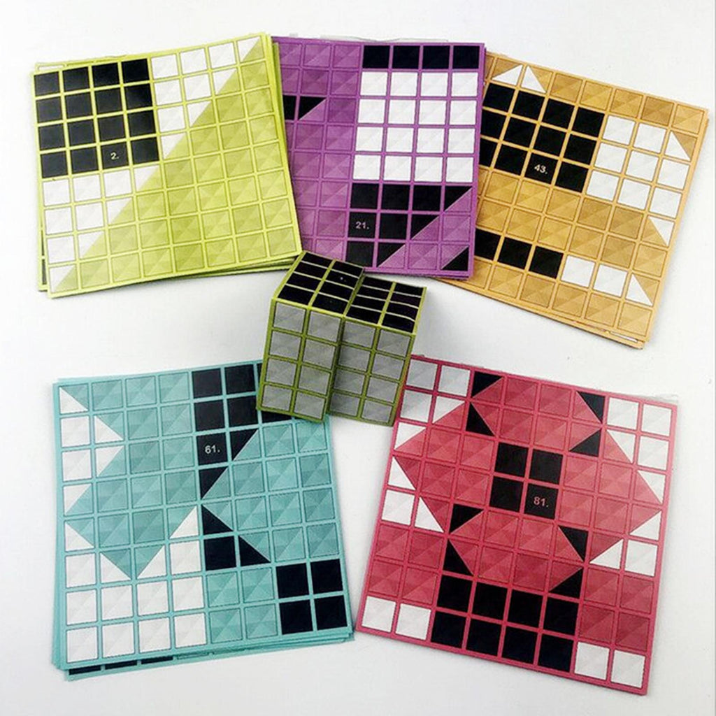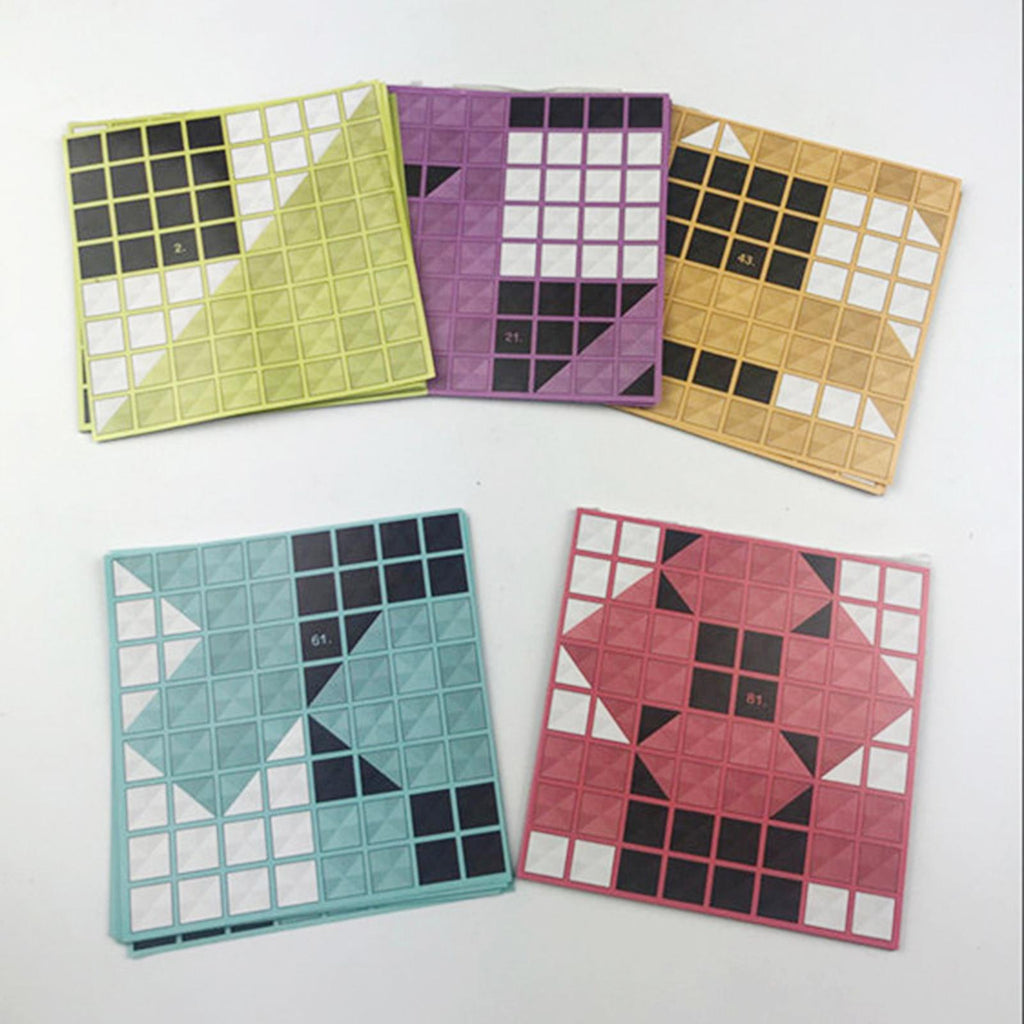 From Easy to Challenging: Fold each sheet of paper into a square so that only one black and the other only white.Different colors and numbers clue on the back give guidance for kids to complete