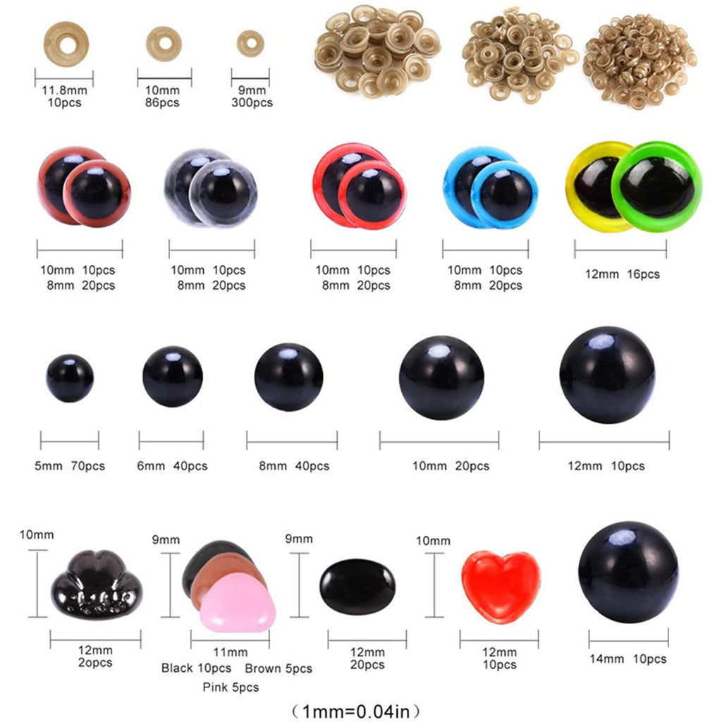 Maxbell 792 Pieces Safety Eyes and Noses Decor for Arts Plush Animals Plush Toy Bear