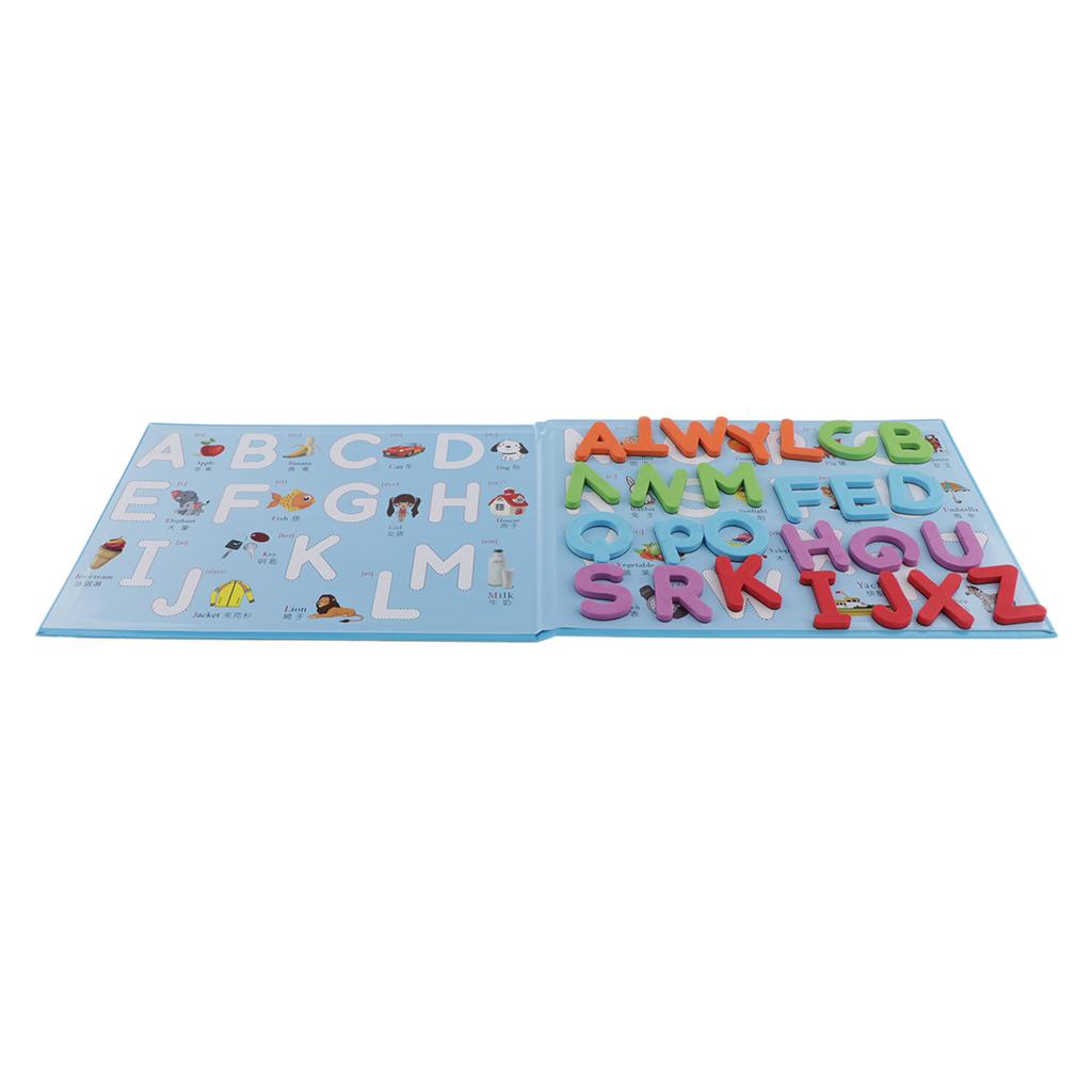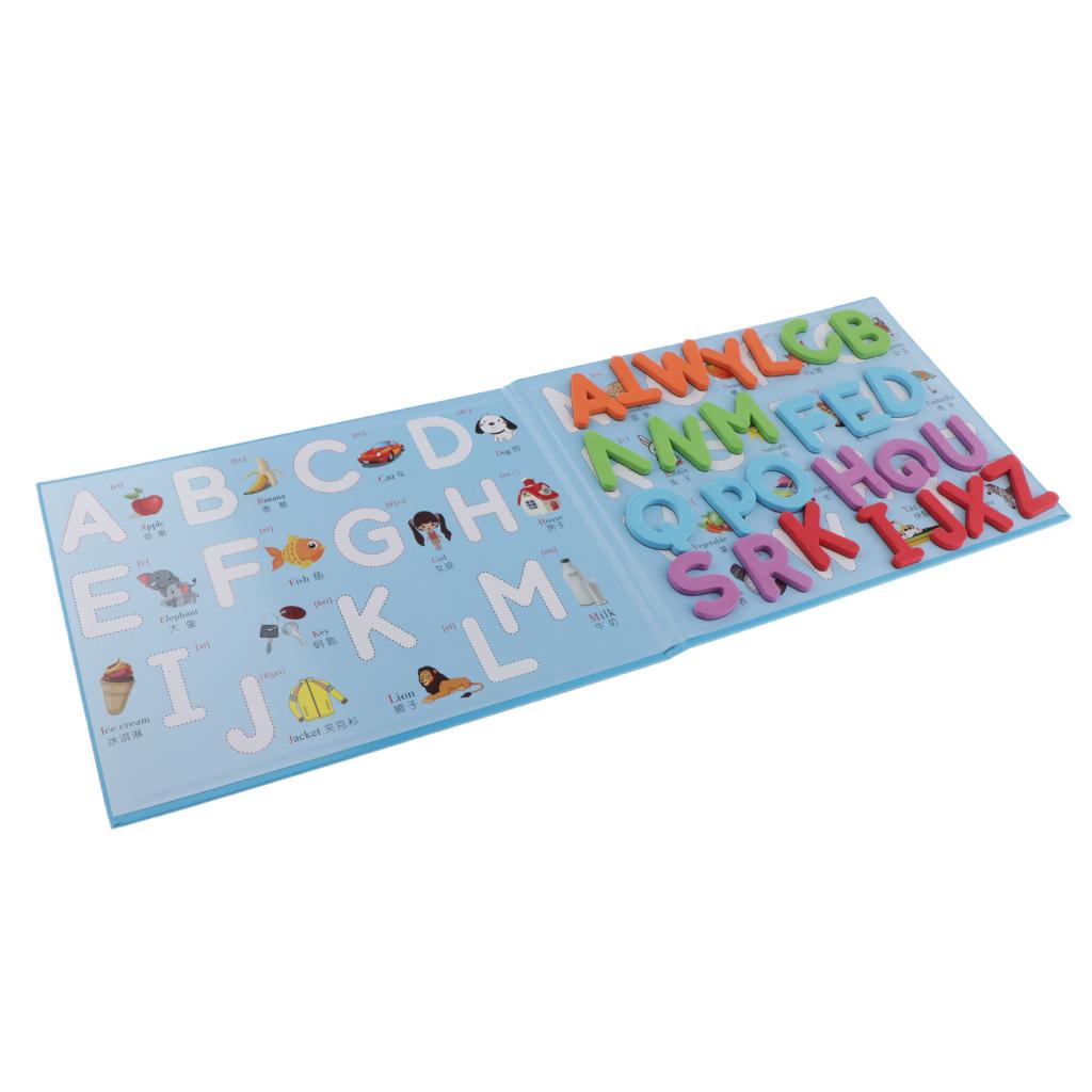 26 uppercase letters on the puzzle board, each letter corresponding to its shape, each letter has a corresponding pronunciation, picture and English words on the right side.