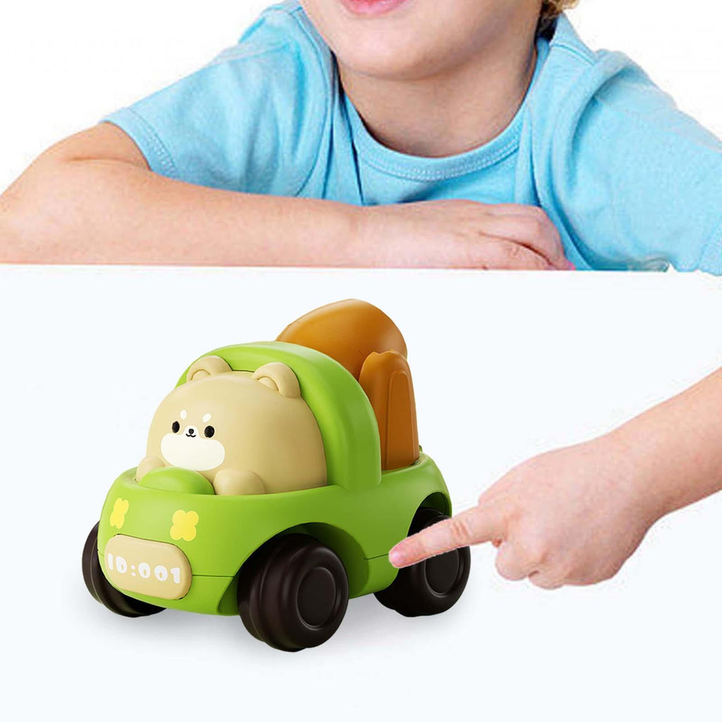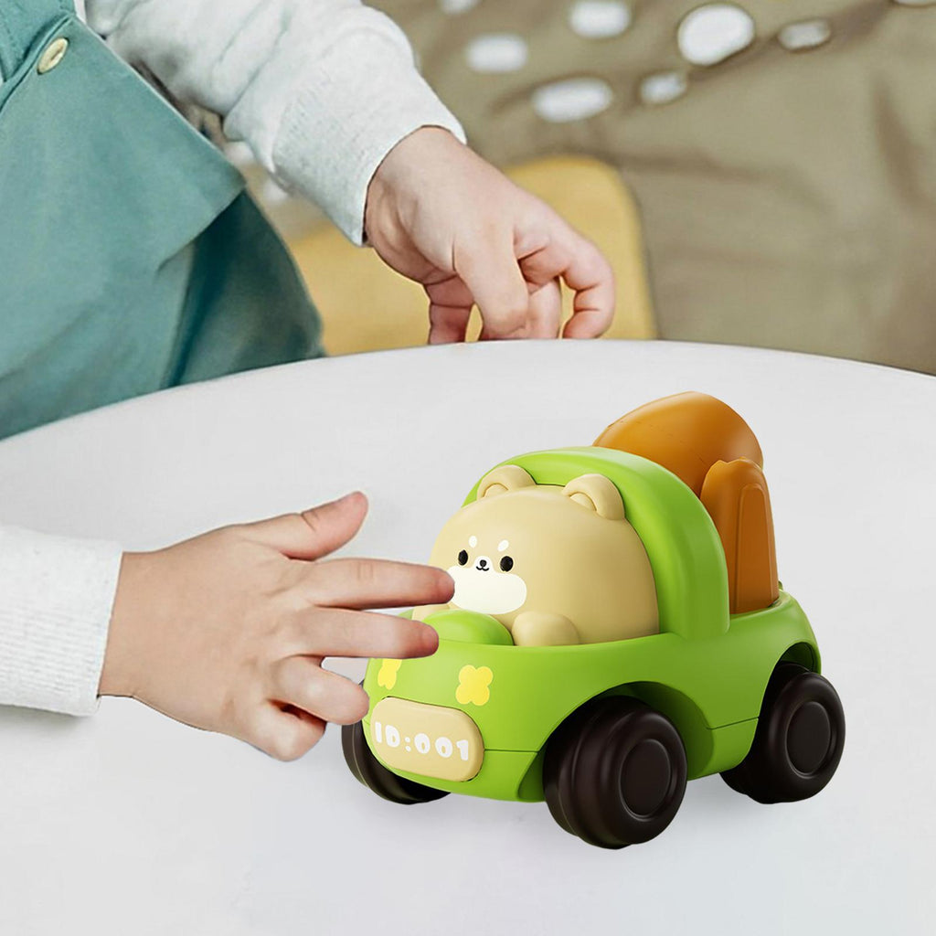 【Advantages】The cartoon vehicle toy could simulate a variety of scenes, develop different gameplays, and cultivate children's crawling ability, imagination, etc. Compact model, and easy to carry.