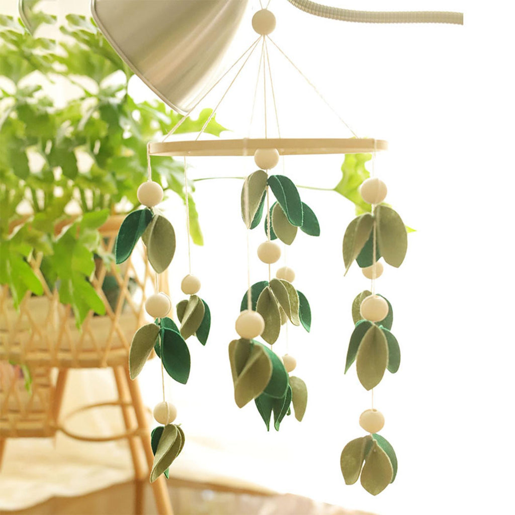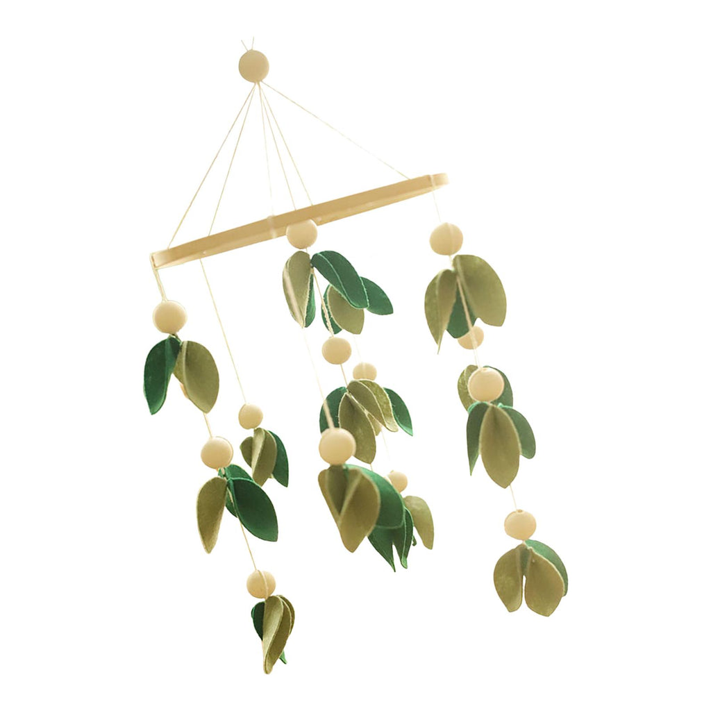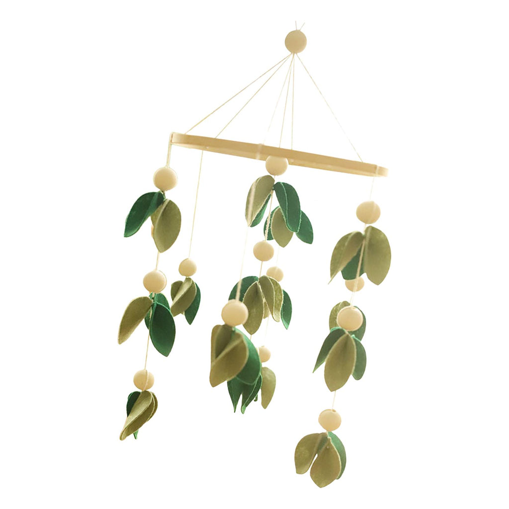 【Crib Hanging Mobile】: Beautiful baby crib mobile hanging toy, felt green leaves and wood beads combination to wind chime, attract the baby's attention, help you comfort the baby's emotions.