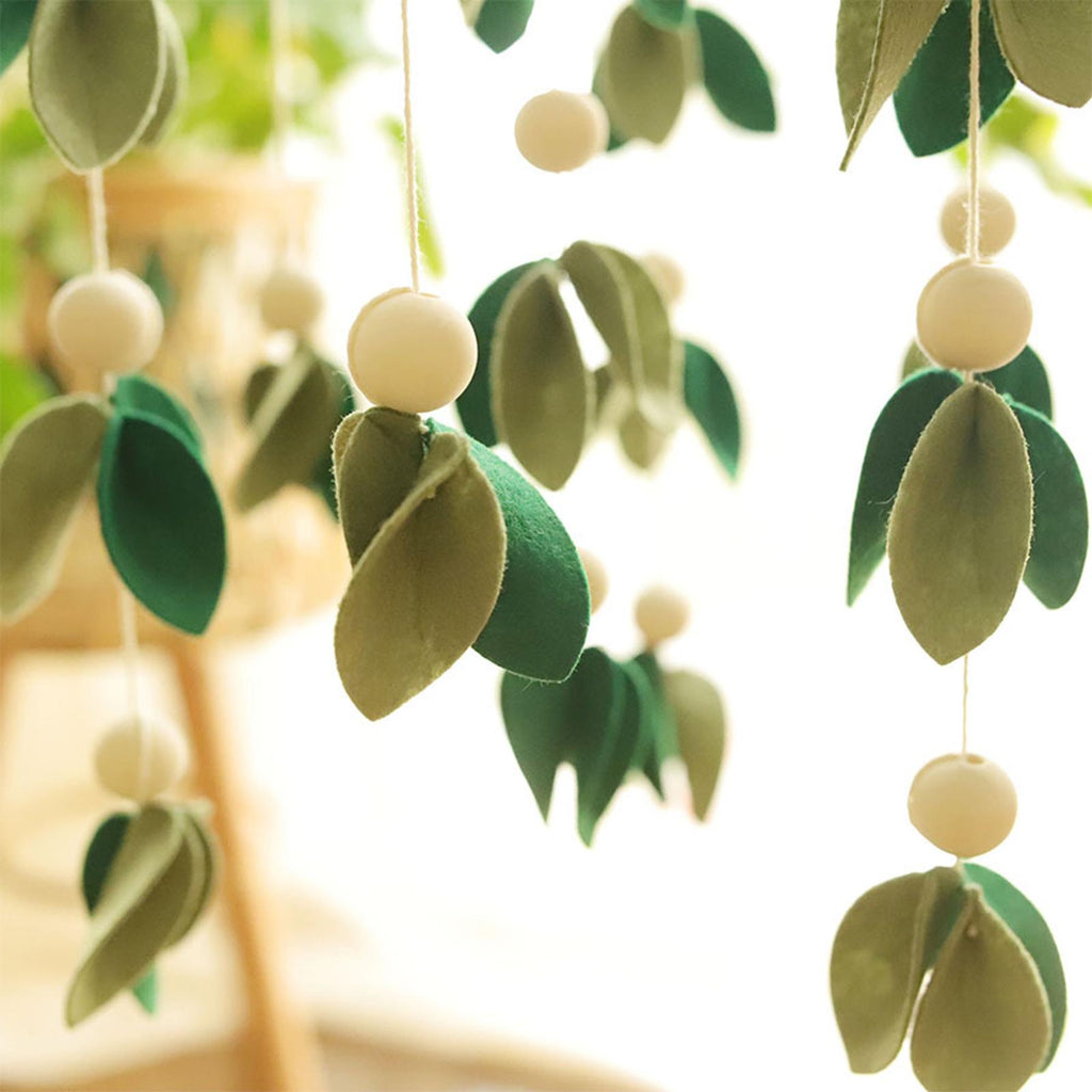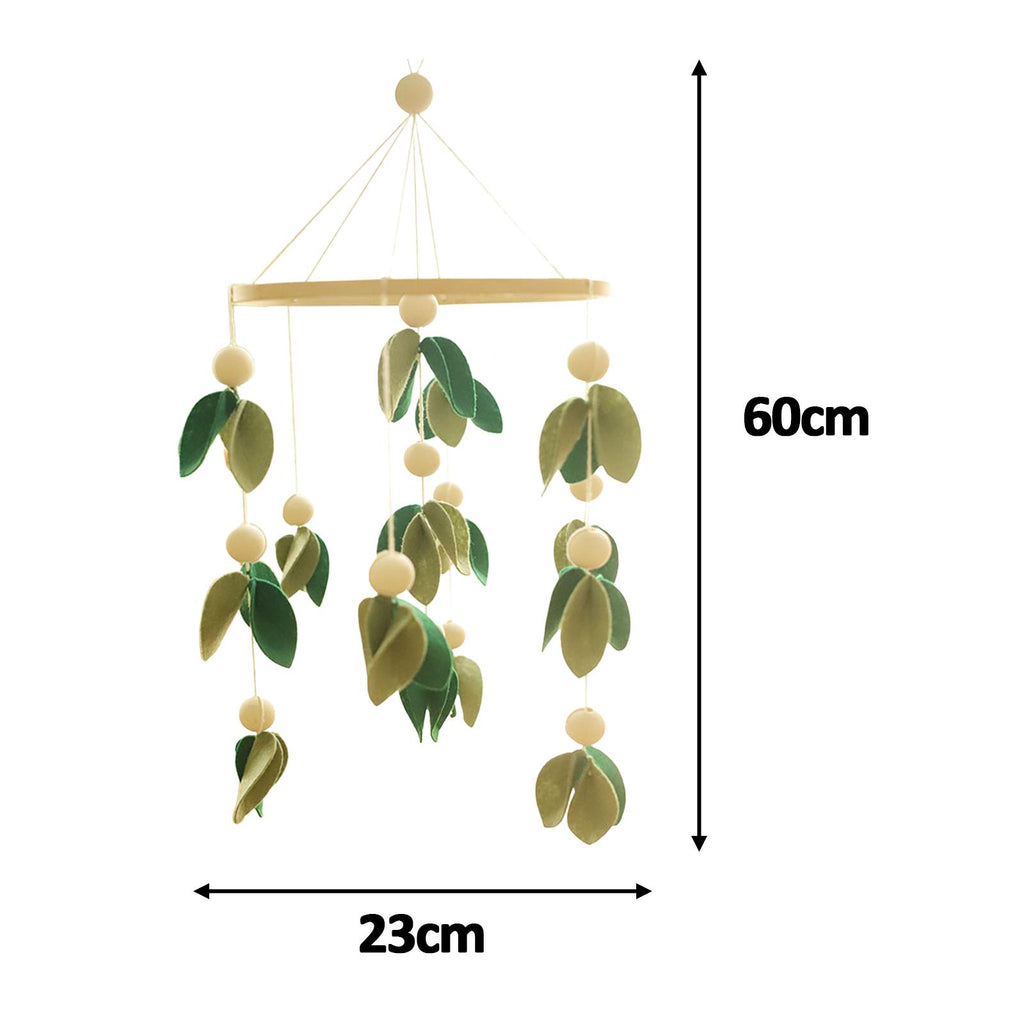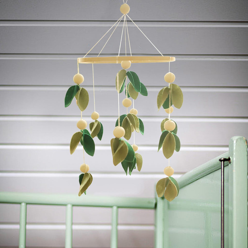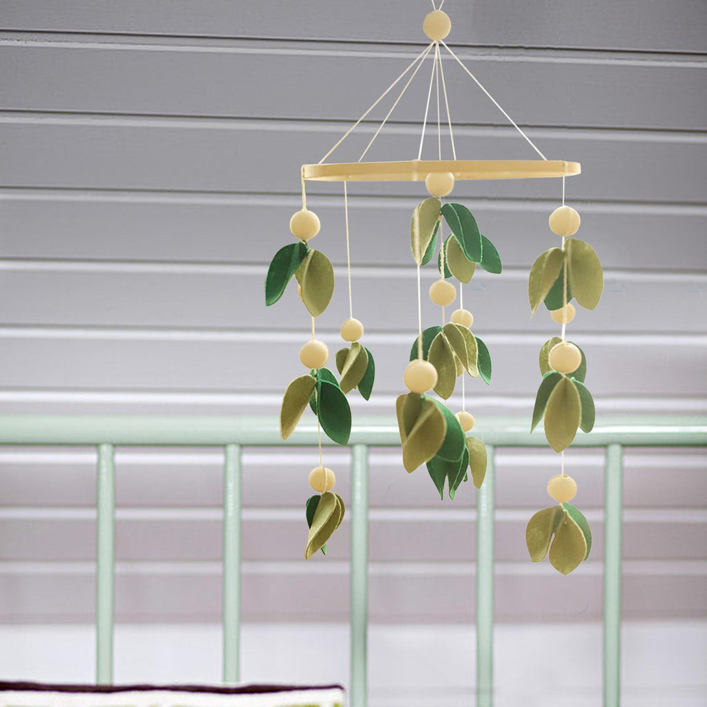 【Crib Hanging Mobile】: Beautiful baby crib mobile hanging toy, felt green leaves and wood beads combination to wind chime, attract the baby's attention, help you comfort the baby's emotions.