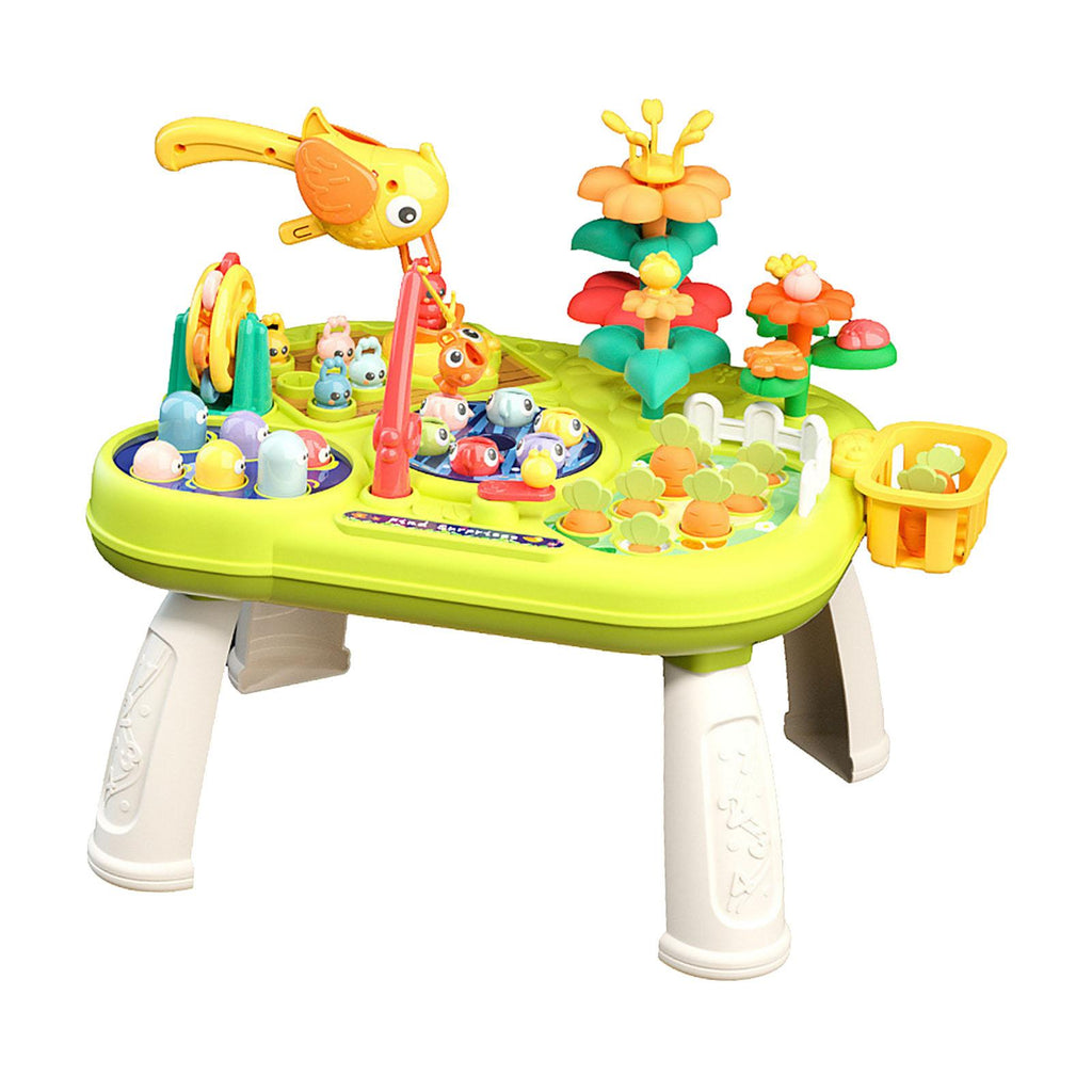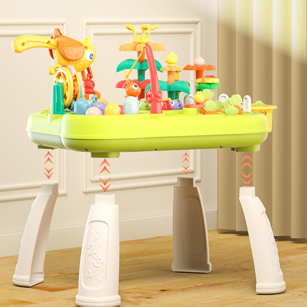 【Rotating Fishing Platform】: Baby Activity Table, parent child interaction is more joyful. Turn the handle to rotate the fishing platform, use the fishing rod to catching small fishing. The table leg can be disassembled to satisfy different modes of play, easy to store without occupying space.