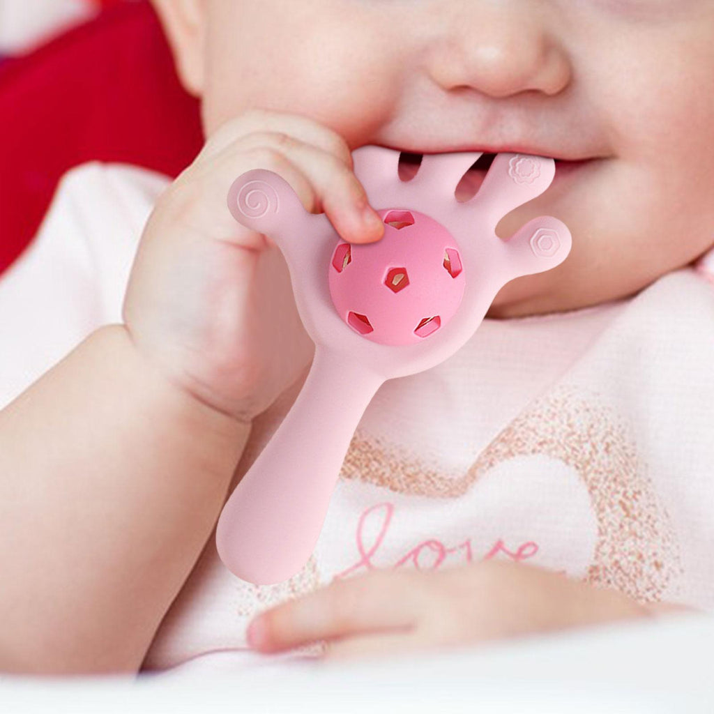 【Conveninent】: This silicone baby teether rattle is durable and easy to clean, long term use.
