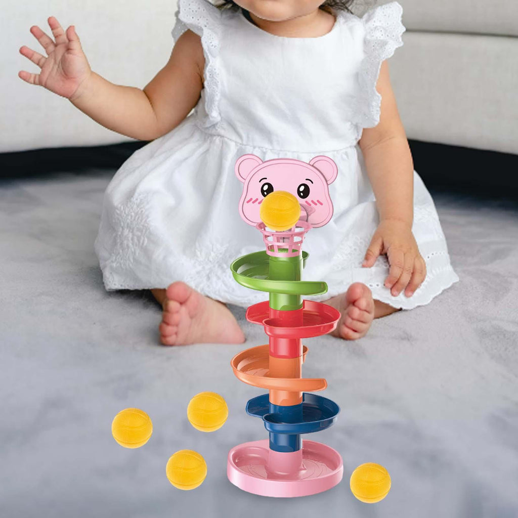 【Baby Toy Ball Track Ball】:  This ball rolling track toy features multiple ramps and balls, providing fun for your . Simply toss the ball and watch it roll down from a level to another.