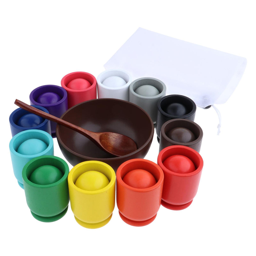 【Montessori Toy】: Wooden balls in cups is great montessori toy, trying different way to use cups and balls can helps little ones with color sorting, matching,and counting.