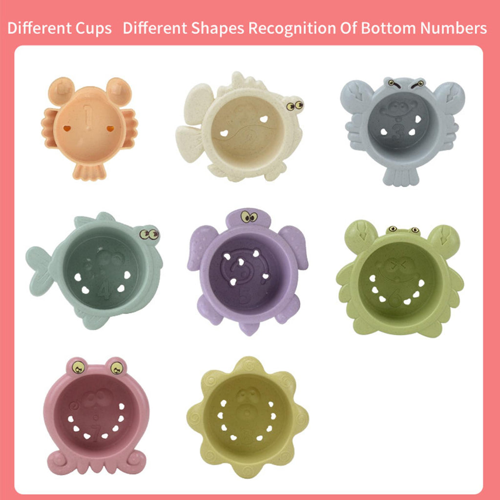 【Educational Toy】: Baby Bath stacking toy includes fun simulation marine animal models and cartoon stacking cups, making bath time more interesting and helping to develop your baby's cognitive abilities.