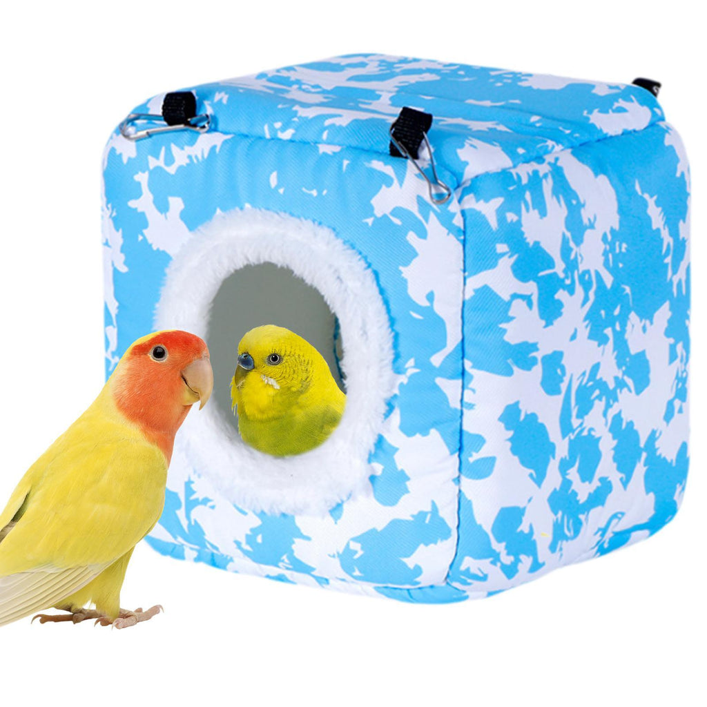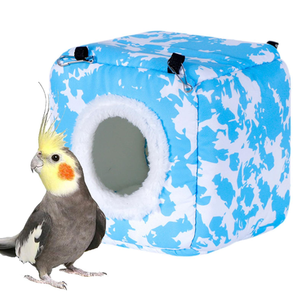 Maxbell Bird Hanging Nest Thickened Plush Shed Hut for Cockatiel Bluebirds Lovebirds Blue
