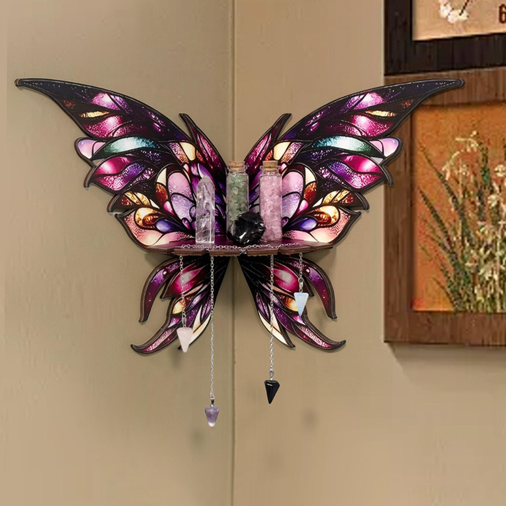 【Application】: The butterfly corner shelf acts as an attractive display for various items. Be it figurines, small collectibles, potted plants, or hanging pendants and keys, this shelf caters to your needs, becoming a practical of your décor