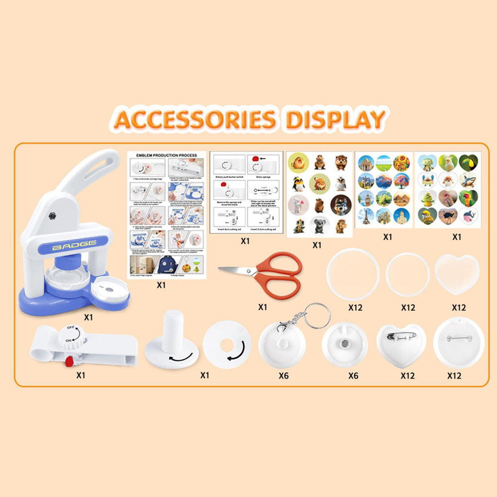 【Nice Gift】: The kids' badge button press machine is a nice gift for boys and girls at birthdays and festivals, great for beginners and DIY enthusiasts