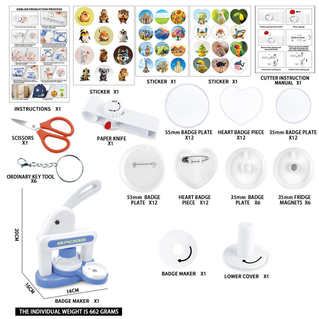 【Easy to Operate】: This pin badge button press machine simplifies the badge making process. Simply cut out your desired design, place it into the machine, and press the button to create your badge effortlessly