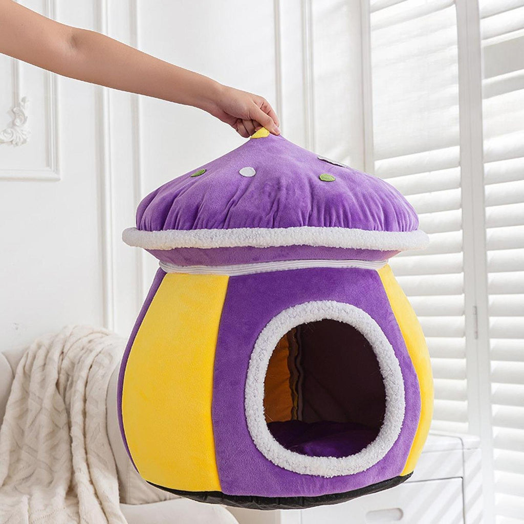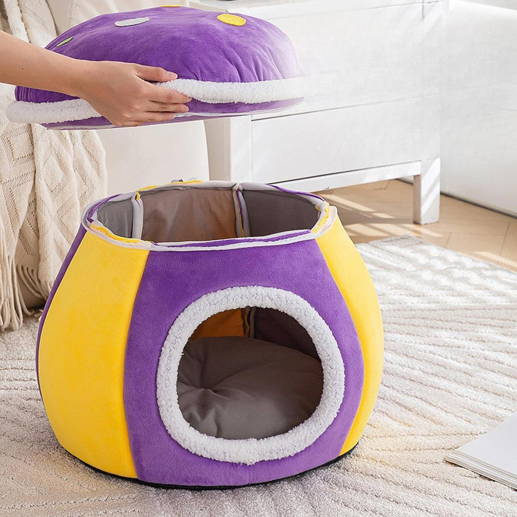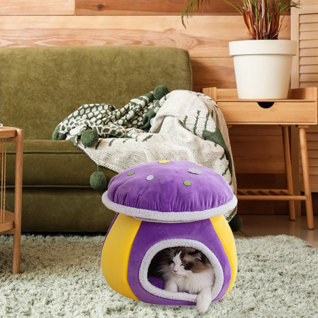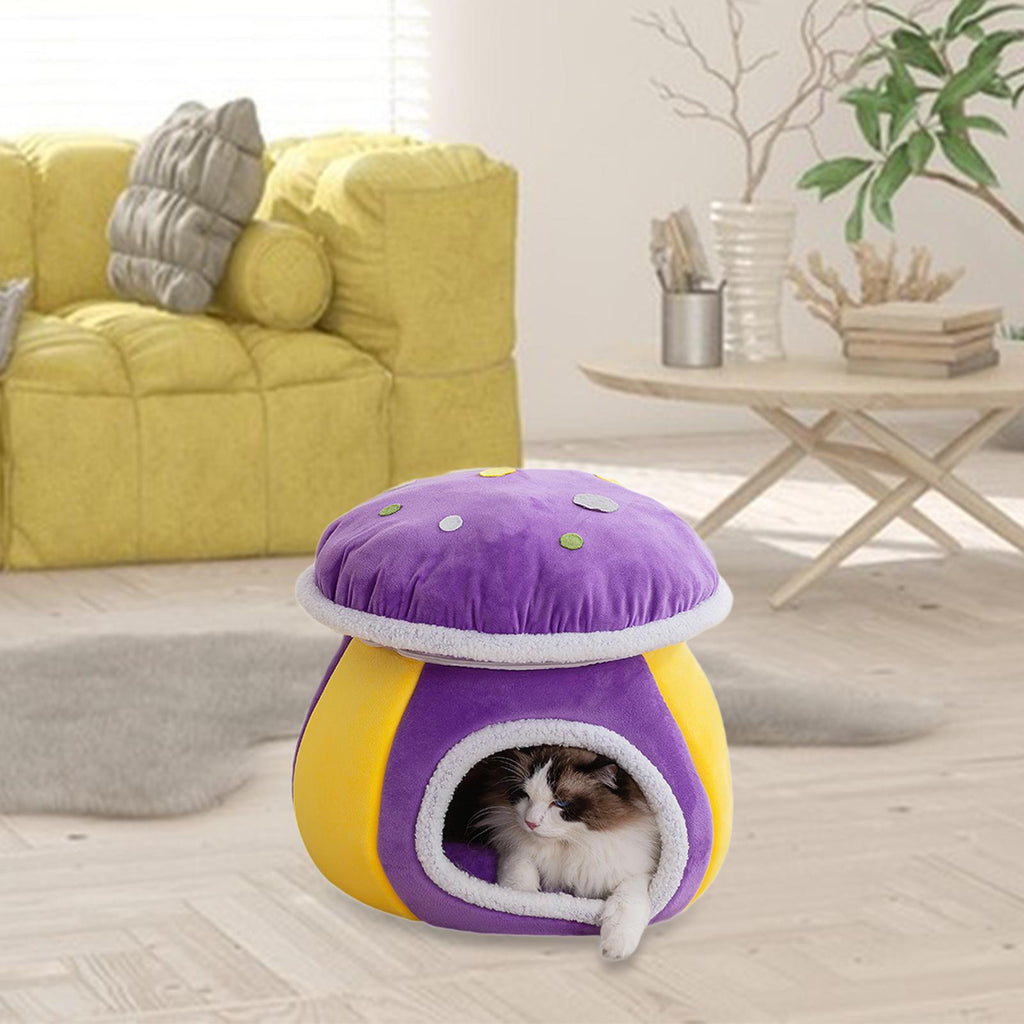 Cat Cave Bed Plush Enclosed Washable with Cushion Warm Premium for Small Pet