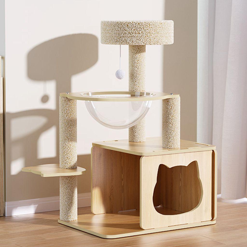【Comfortable Design】: The space capsule is wrapped in soft velvet cloth that is gentle on your cat skin, Cat Scratcher Tree providing a cozy place for them to relax.