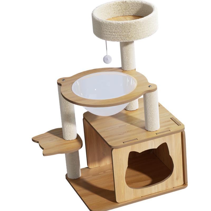 【Quality Material】: This cat tree is made of sturdy wood, ensuring its durability and longevity. It's great for your cats to play and rest on.