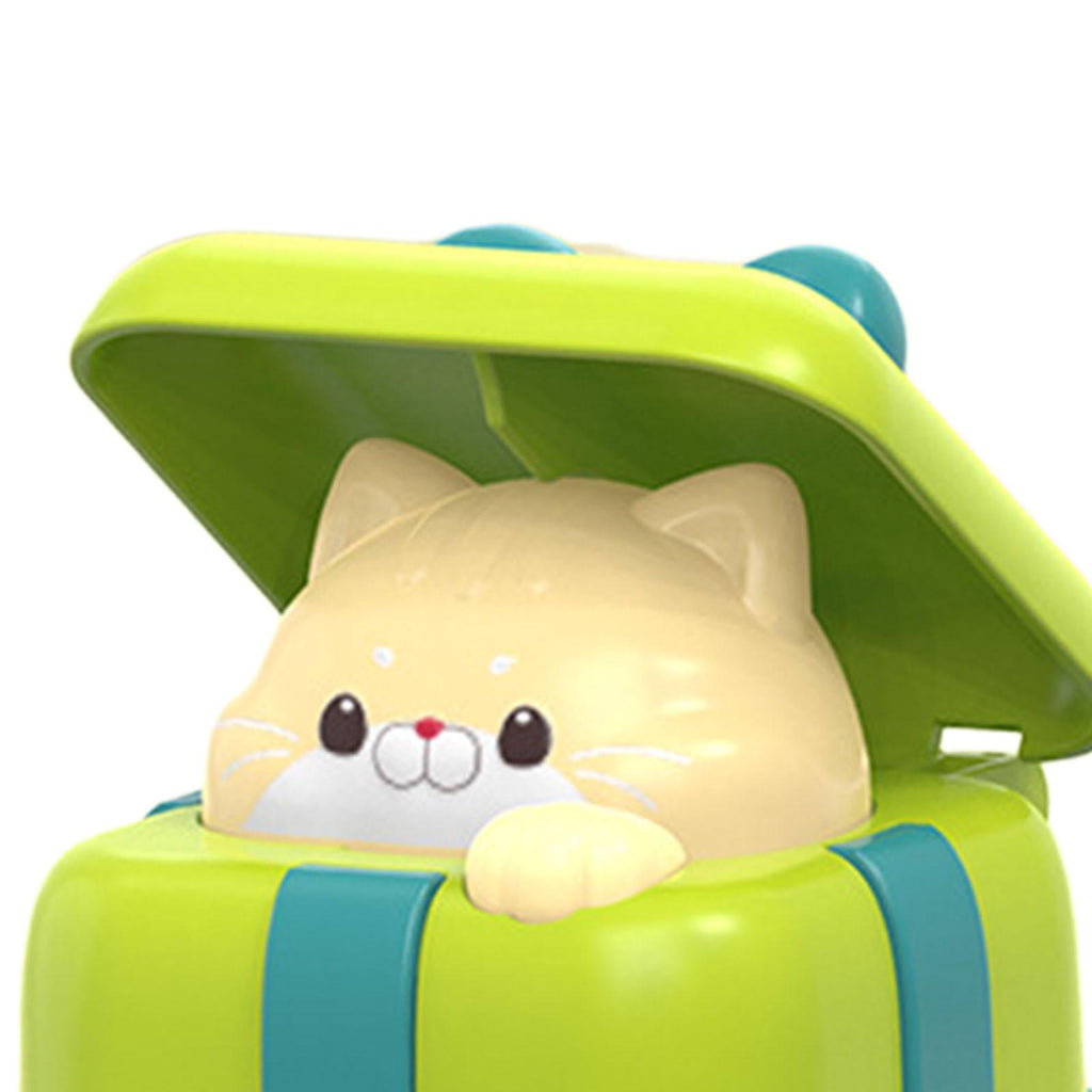 【Pull back car】:Press Vehicle Toy, After pressing the lid, release your little hand and it will slide forward while the lid and the cat slowly up.