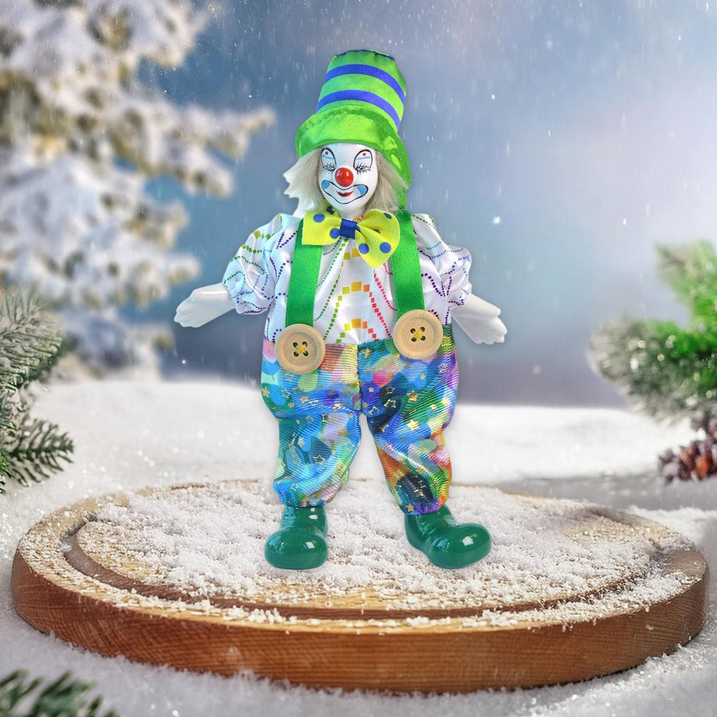 - 【Handcrafted Design】: Porcelain Clown Doll's design, brightly colored costume, intricate facial makeup, and cheerful smile make it a delightful addition to any home or themed party