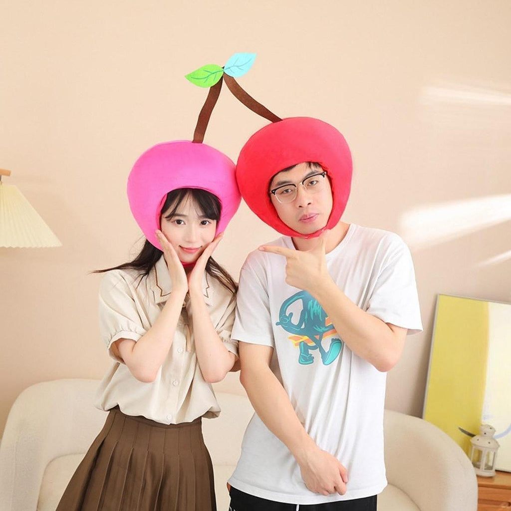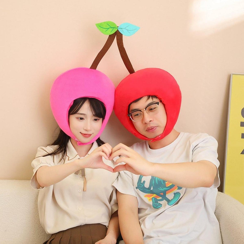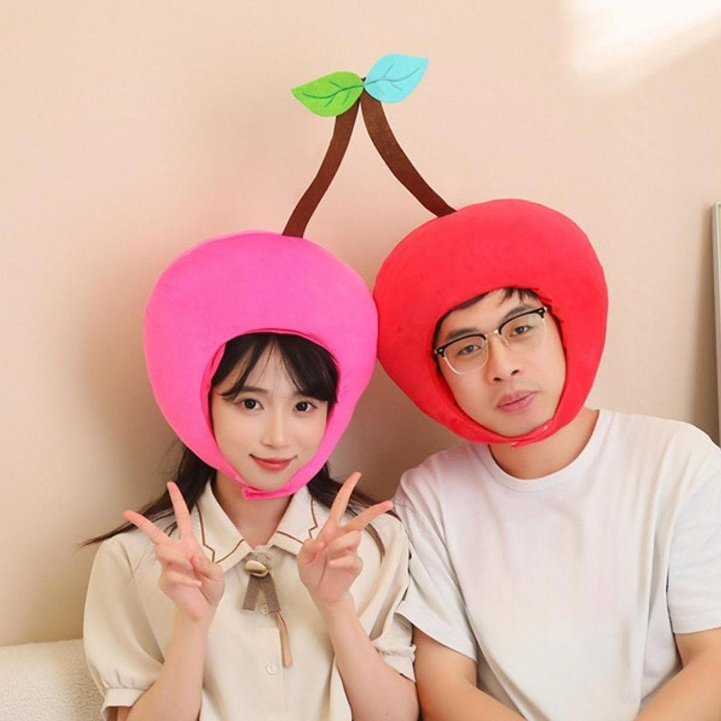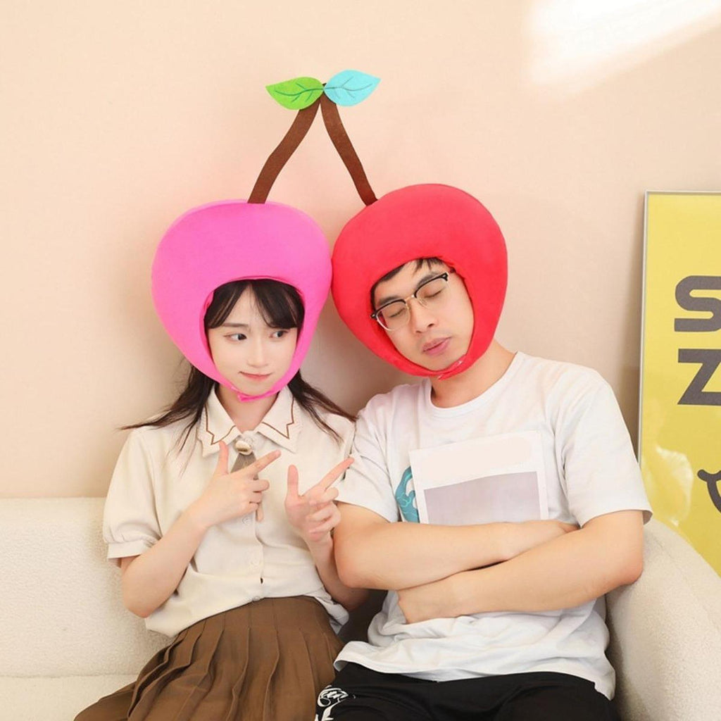Maxbell Cherry Hat Plush Double Head Headgear for Masquerade Ball Festival Role Play
