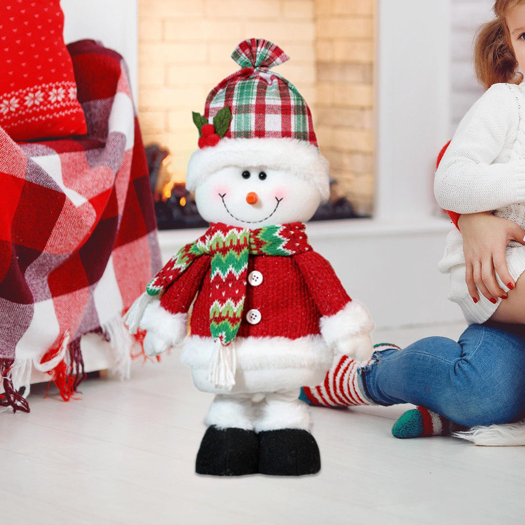 Maxbell Christmas Decoration Plush Figurine Telescopic Legs for Party Desktop Window Snowman
