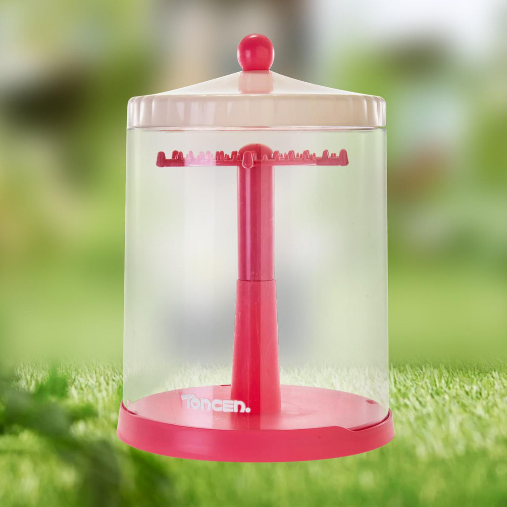 Maxbell Clear Dolls Display Case Elegant Rotating for Mini Action Figures Small Toys pink