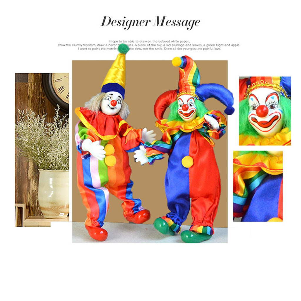 【 Design】:Porcelain Clown Doll's design, brightly colored costume, intricate facial makeup, and cheerful smile make it a delightful addition to any home or themed party