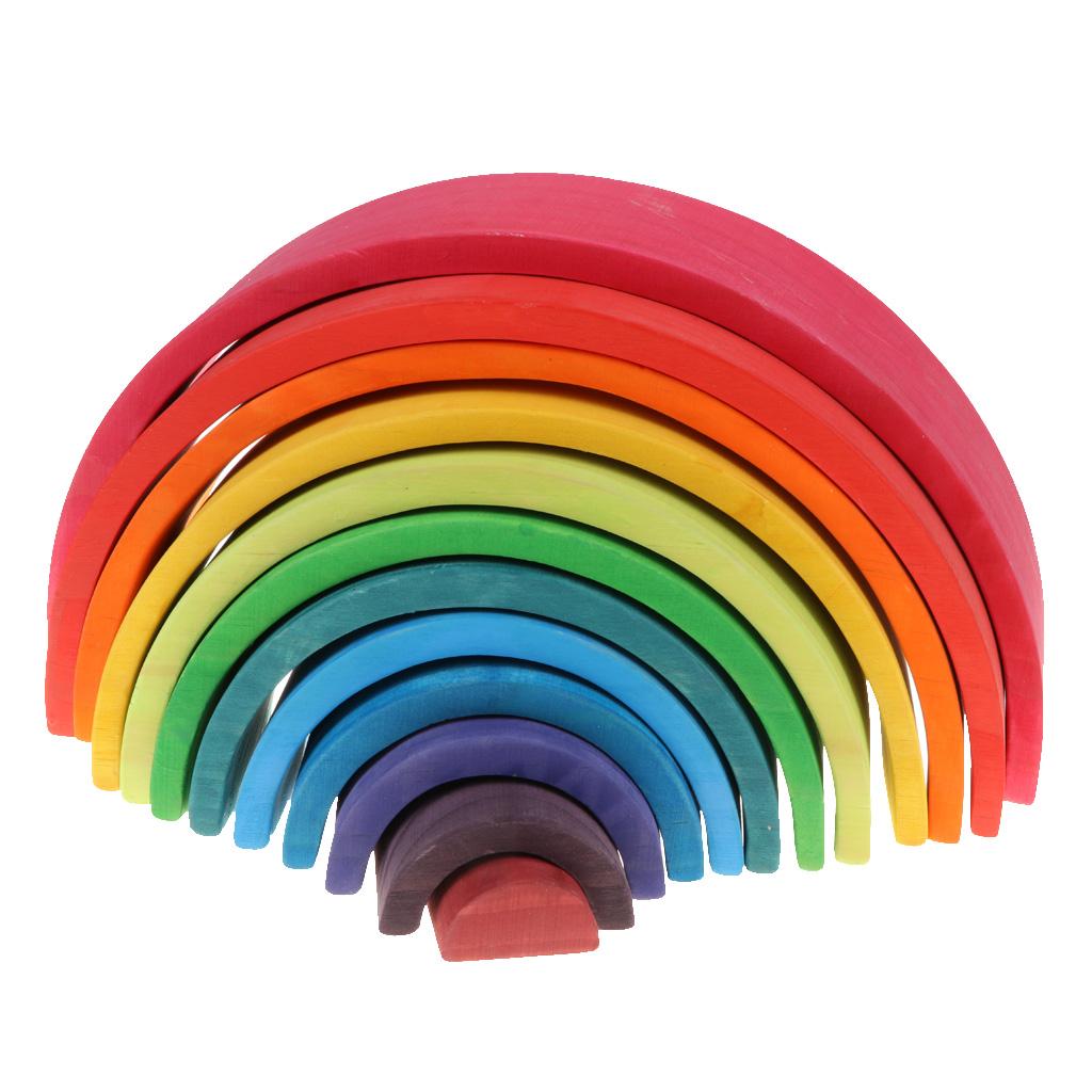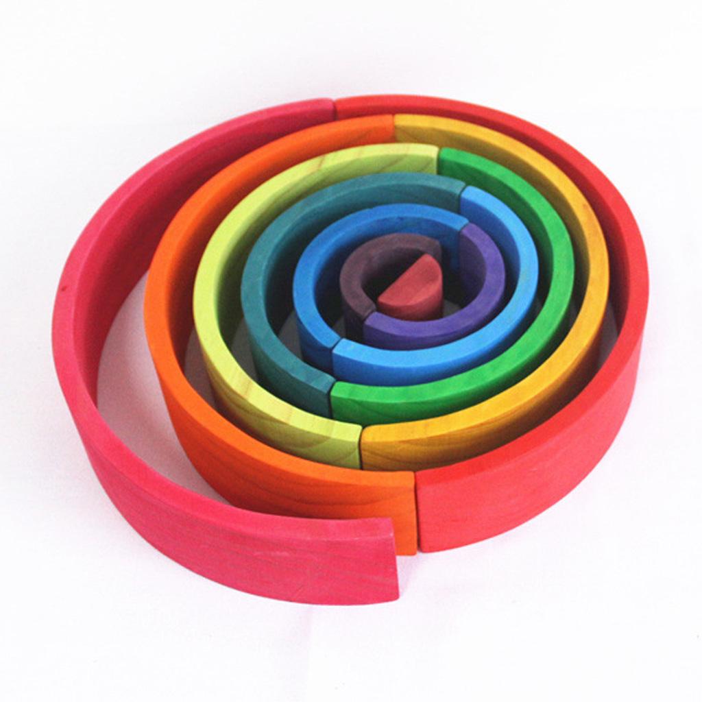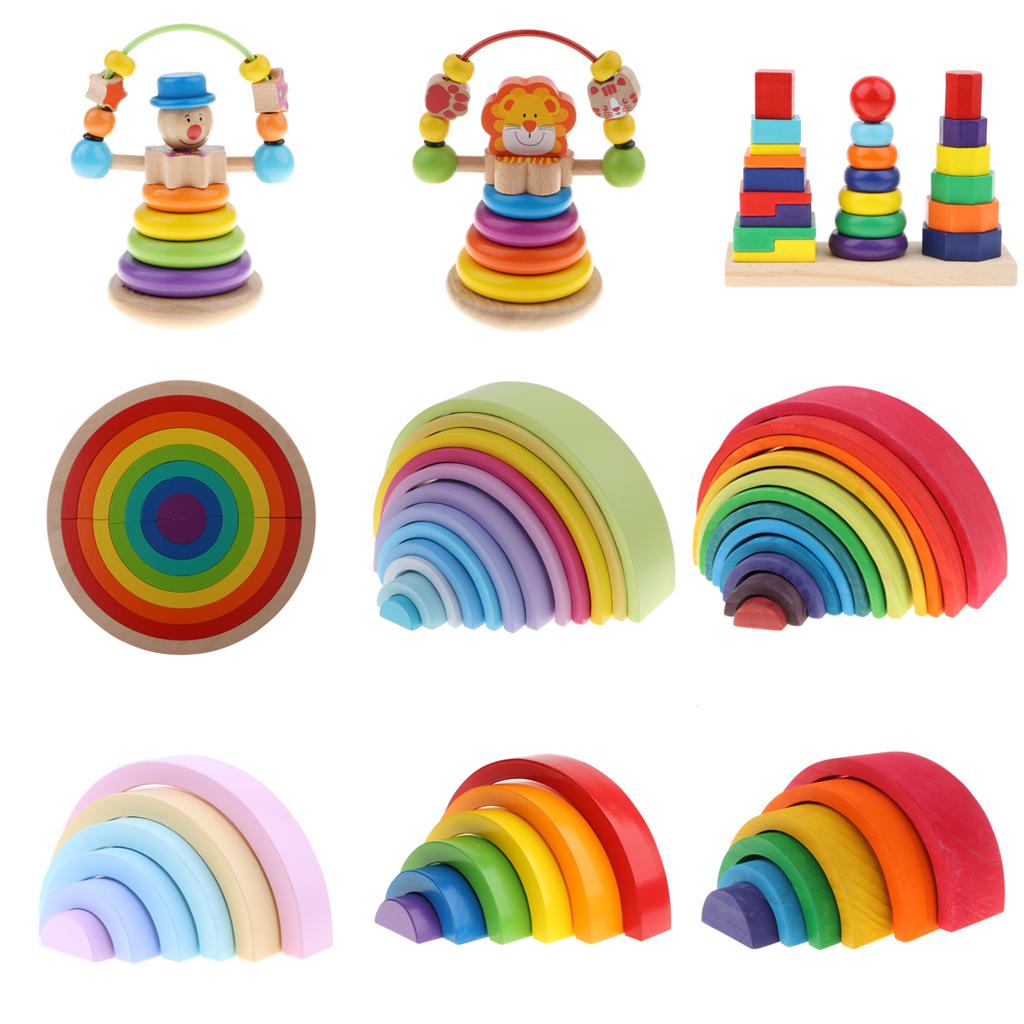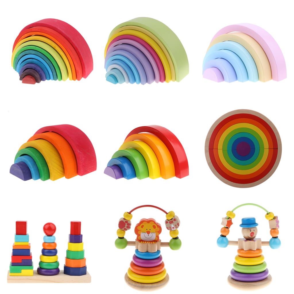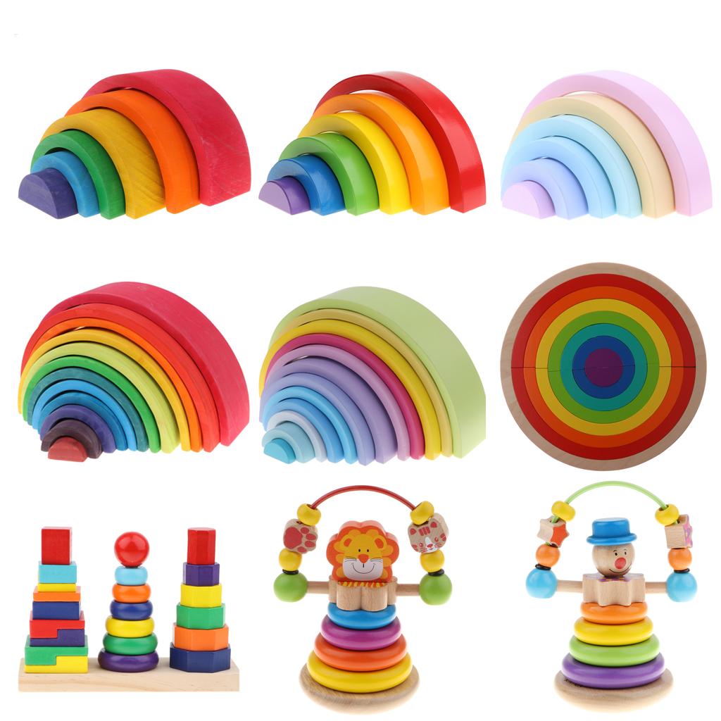 Colorful Wooden Rainbow Blocks Stack Tunnel Stacking Game Toys