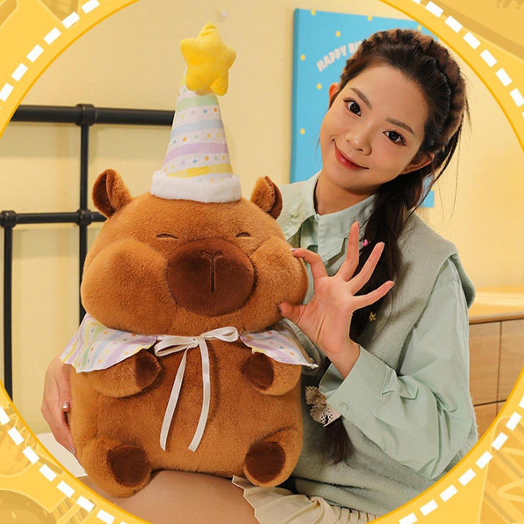 Maxbell Cute Capybara Plush with Birthday Hat Plush Doll Gift Decoration Party Favor 46cm