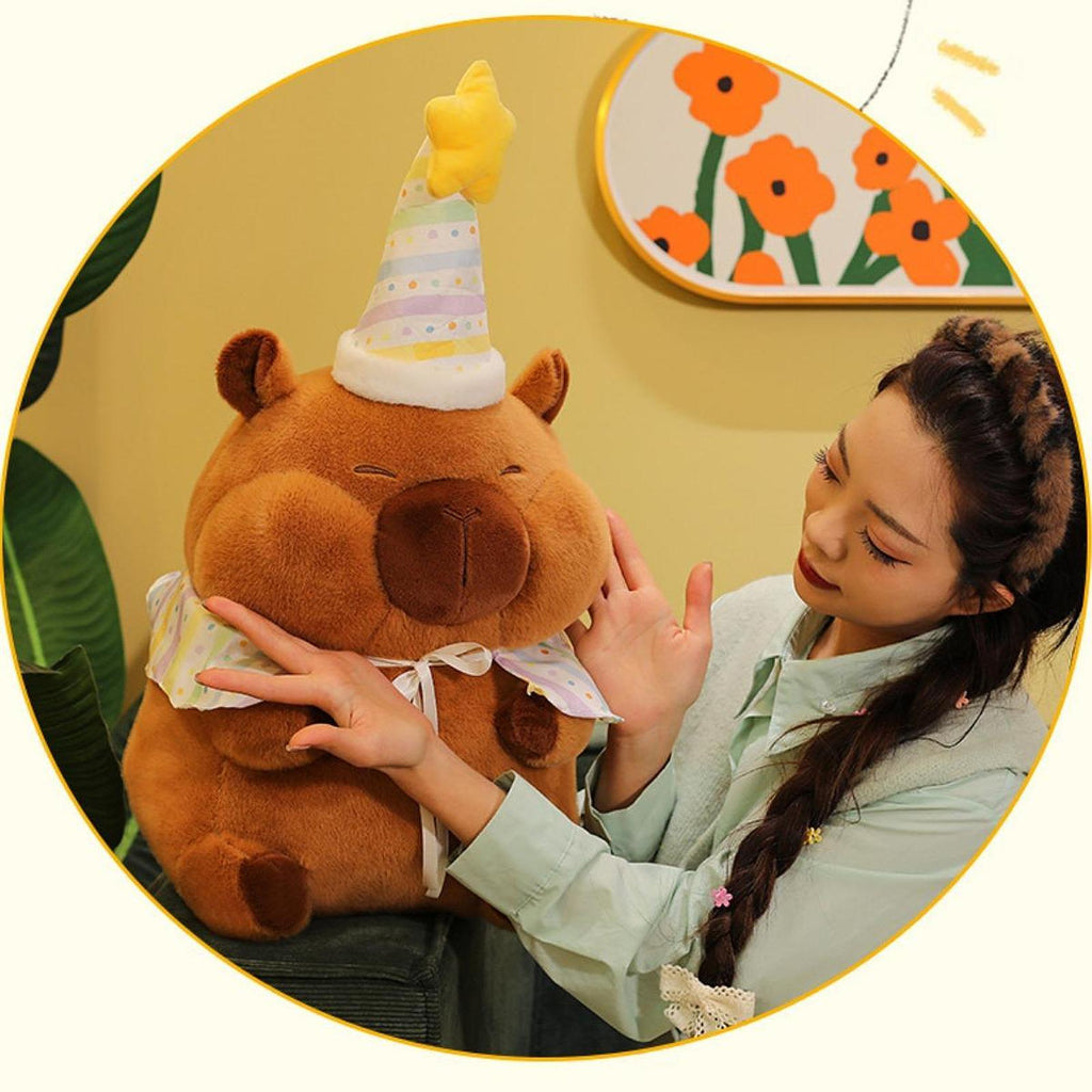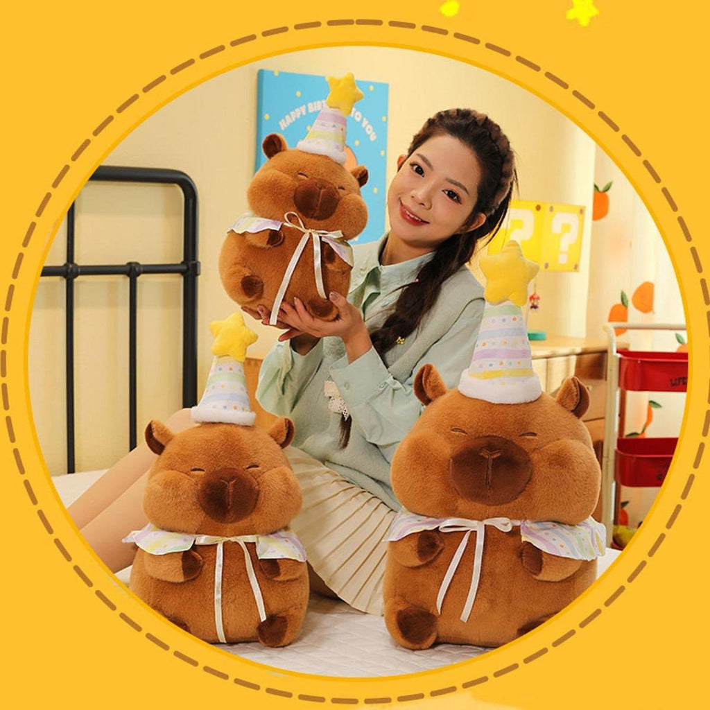 【Cute Plush Doll】: Lovely capybara stuffed animal plush toy has birthday themes design, wearing birthday hat, very unique and funny