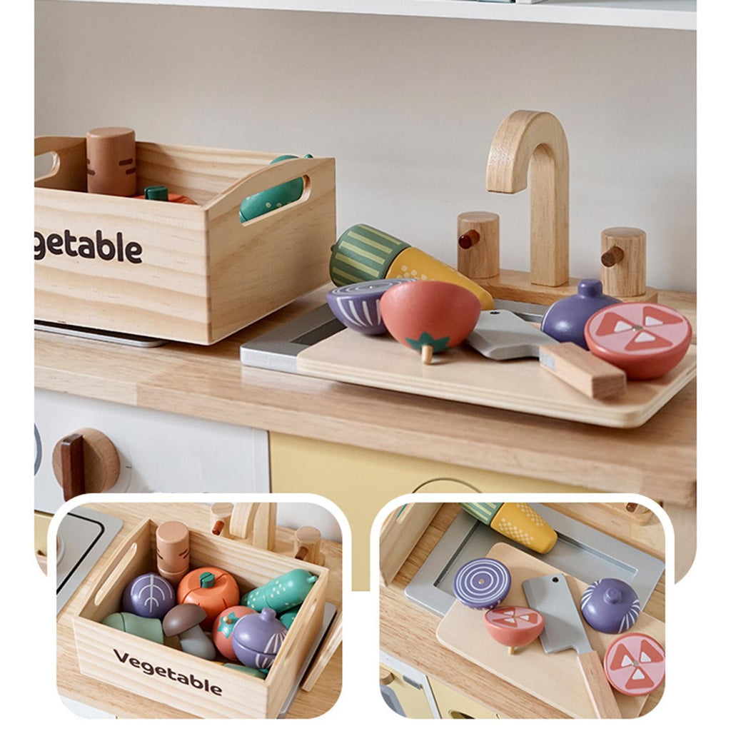 【Play House Series】: Wooden Pretend Food Play is a little chef who likes role playing. Through games, it helps to improve their fine motor skills, social skills and early education enlightenment.