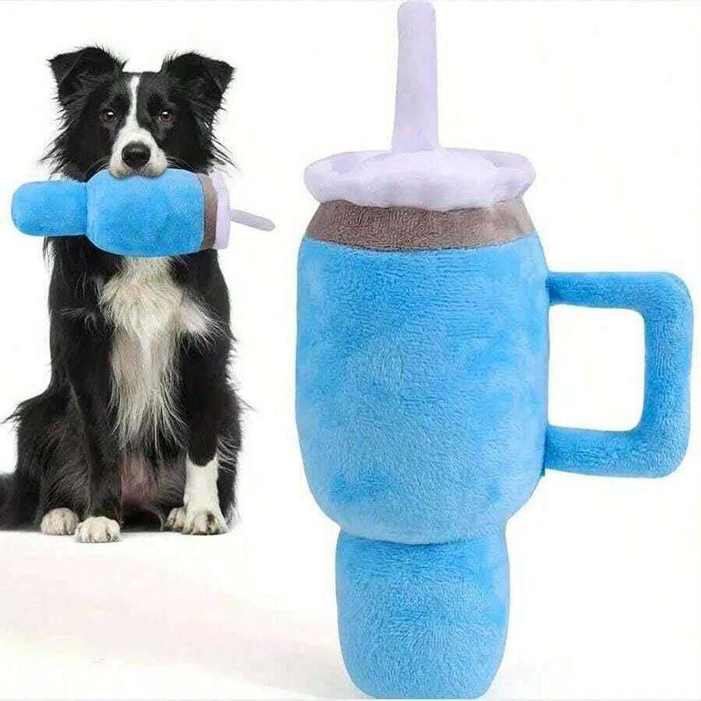 Dog Squeaky Toy Bite Resistant Chewing Plush Cup for Small Medium Large Dogs blue