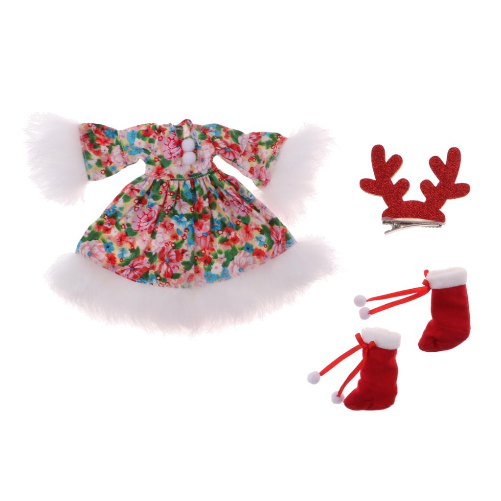 Maxbell Doll Christmas Outfit Plush Dress Shoes Suit for 12" Blythe Dolls Clothes #2