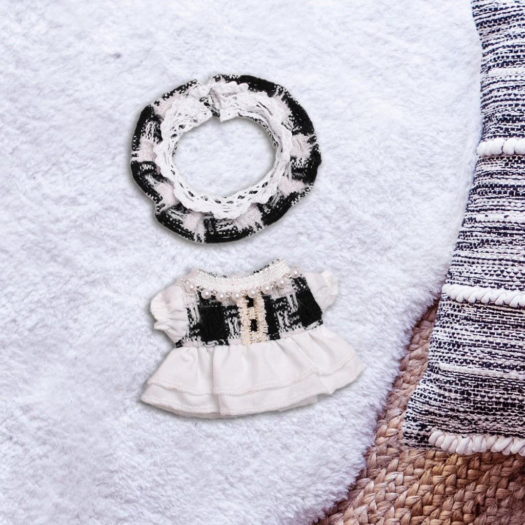 Maxbell Doll Clothes Photo Props Plush Doll Accessories Doll Outifits for 17cm Dolls Black white
