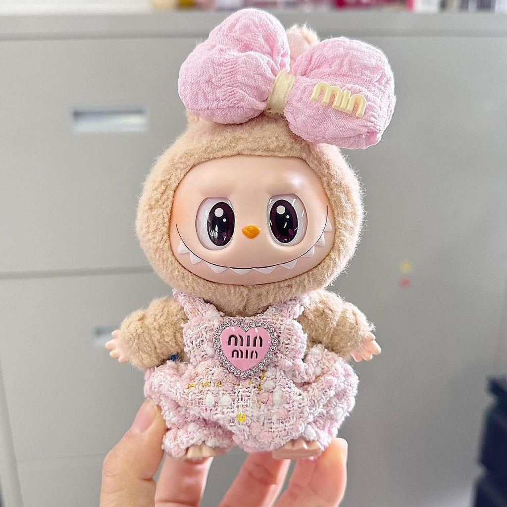 【Suitable for 15 cm 17 cm Dolls】: Mini plush doll clothes with bow headdress are suitable for Labubu dolls of 15 cm 17 cm/5.91 inch 6.69 inch. Please note that this is not for real people to wear