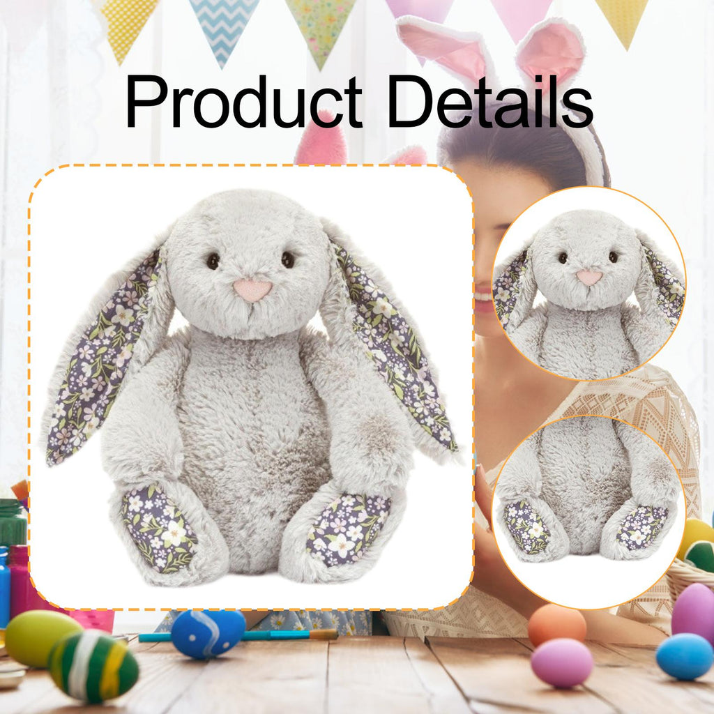 - 【Design】: Features an adorable floral pattern and lifelike details, making this Easter bunny plush doll irresistibly cute and full of charm