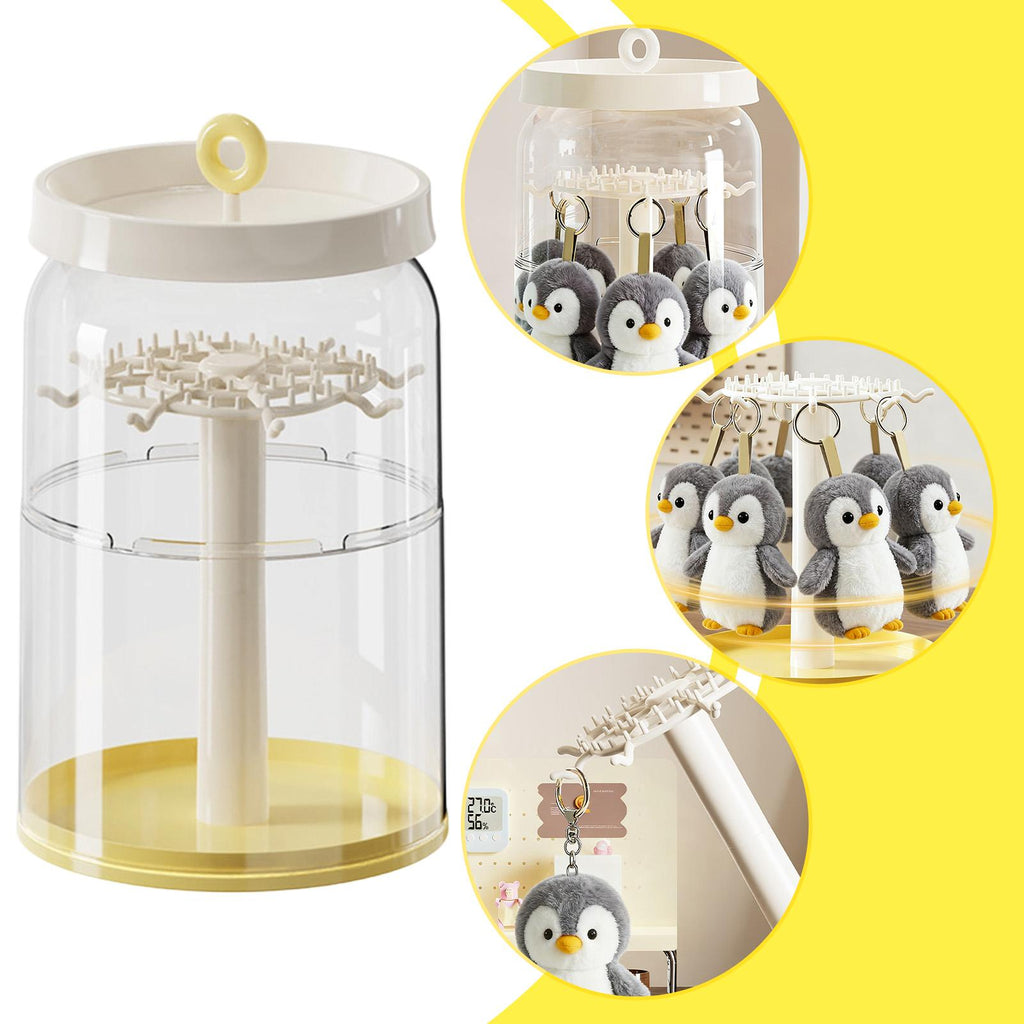 Figure Display Case Rotating Showcase for Collectibles Plush Dolls Mini Toys Creamy Yellow