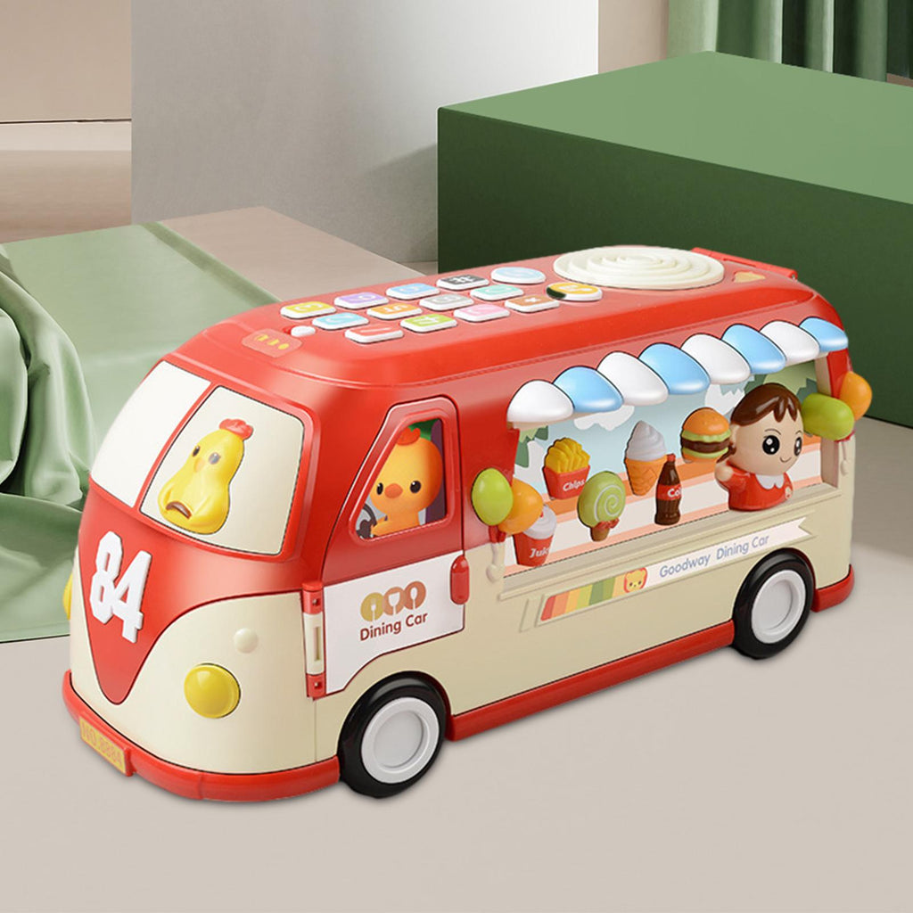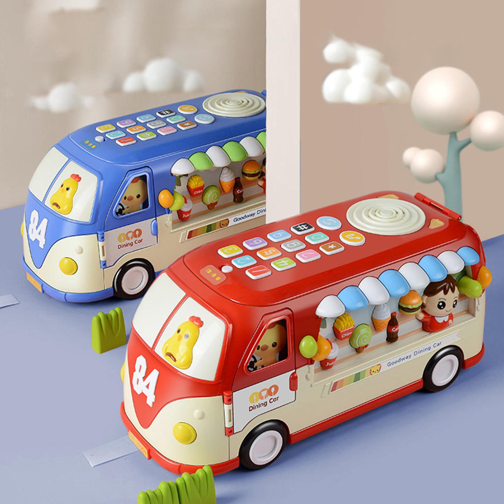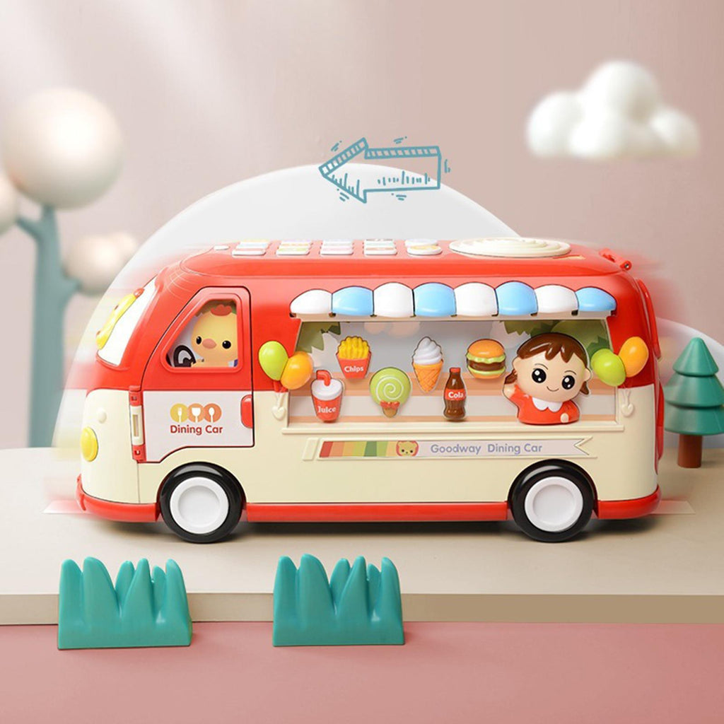 【With Music and Light】: Our Baby interactive bus dining car toy is a fun filled, flash light and interaction sound designed to stimulate your child's imagination and creativity.