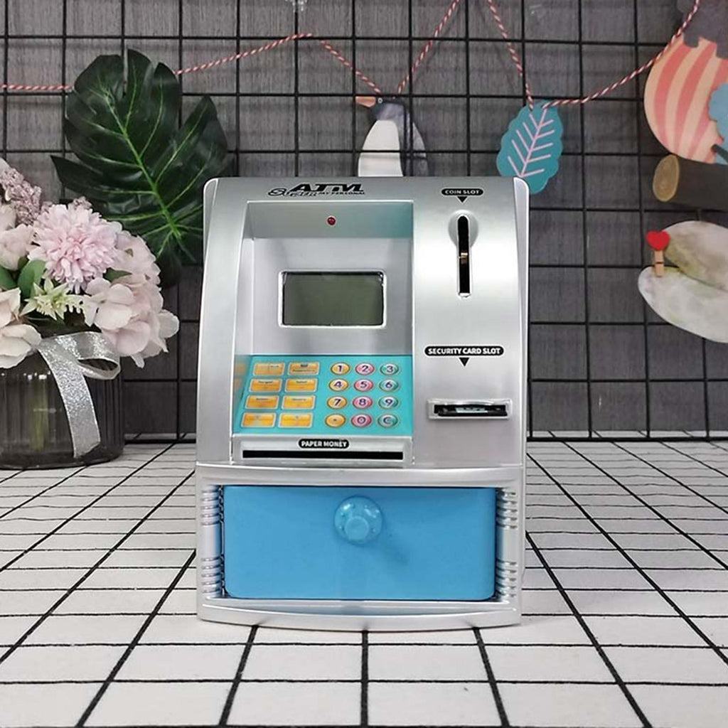Maxbell Kids ATM Piggy Bank Educational Toys for Ages 3 4 5 6 7 8 Years Old Children silver blue