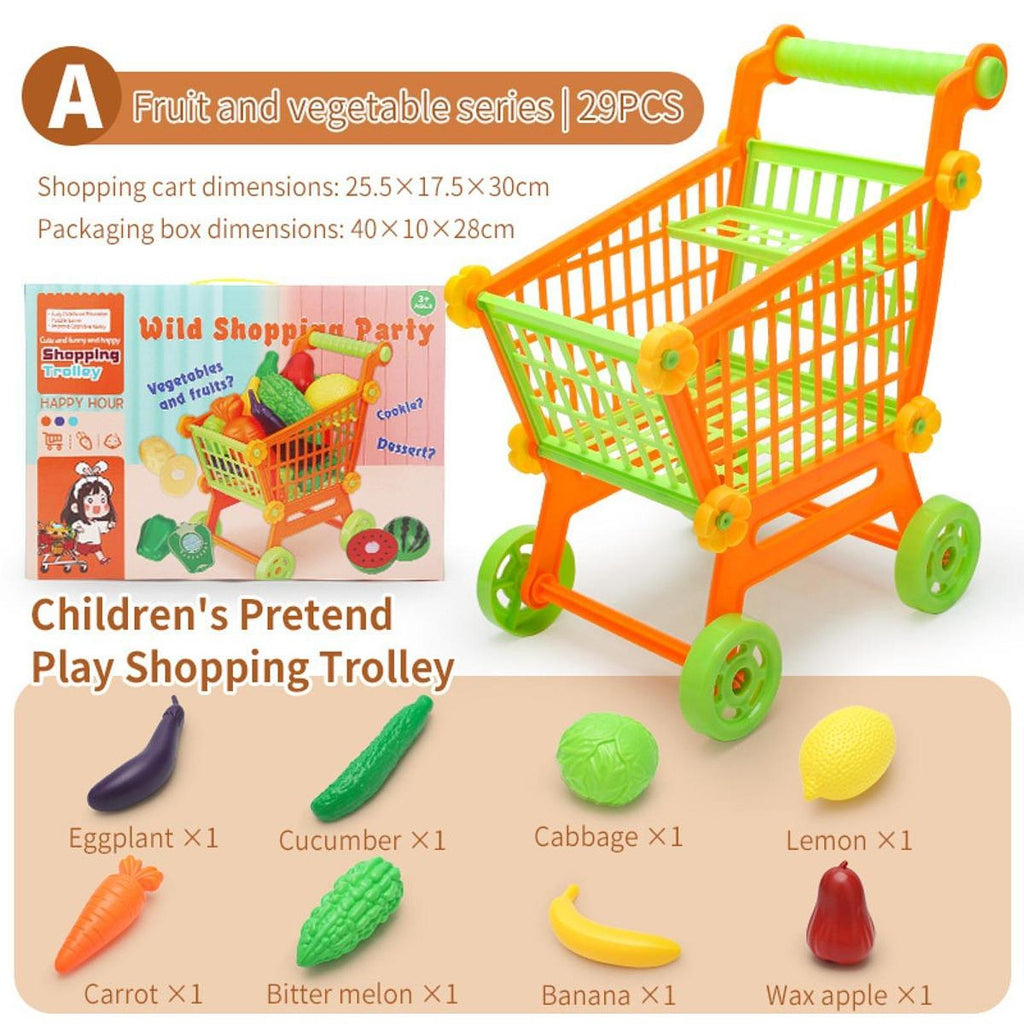 【Kitchen Game Trolley Play Set】: The shopping cart allows your children to pretend to be adults and buy interesting food; encourage children to use their imagination, develop intelligence, and distinguish colors