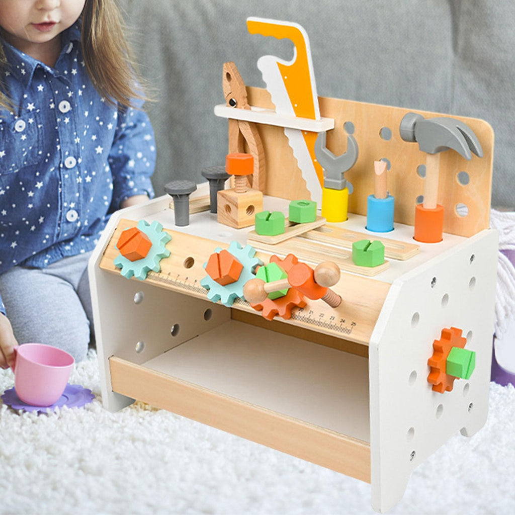 Maxbell Kids Toys Play Workbench Set Wood Wrench Toy Tool Set for Children Babies